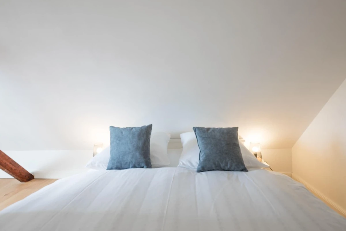 Soffitta: (Camera da letto su soppalco aperto(attraverso scala ripida, accesso con soffitto basso)(letto matrimoniale(160 x 200 cm)))