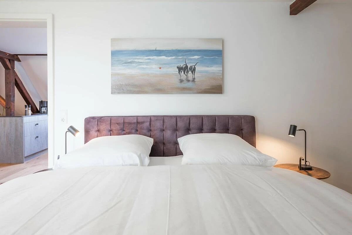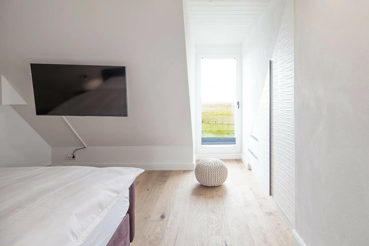 La storica chiusa di Arlau: goditi il tuo tempo libero con l'incomparabile vista sulla riserva naturale di Beltringharder Koog. L'appartamento è immerso nel paesaggio palustre della Frisia settentrionale, direttamente nel Parco Nazionale del Mare di Wadden e Patrimonio dell'Umanità. Si trova direttamente sul Beltringharder Koog, che è stato arginato solo nel 1987 ed è ora la più grande riserva naturale terrestre dello Schleswig-Holstein. Migliaia di oche, anatre e uccelli si incontrano qui, un vero spettacolo naturale! E puoi guardarlo direttamente dalla finestra del soggiorno o dal tuo terrazzo chic. Il prossimo stabilimento balneare sulla diga verde esterna con un piccolo ristorante dista solo 5 km. Gli affascinanti dintorni possono essere perfettamente esplorati in bicicletta. Di fronte alla porta le isole della Frisia settentrionale e Halligen, che possono essere esplorate da Halligfahrt e in parte da un'escursione (guidata) in pianura fangosa. Husum, "la città grigia sul mare" Theodor Storms, Schleswig, Flensburg, il Regno di Danimarca e molte altre destinazioni degne di nota sono facilmente raggiungibili.