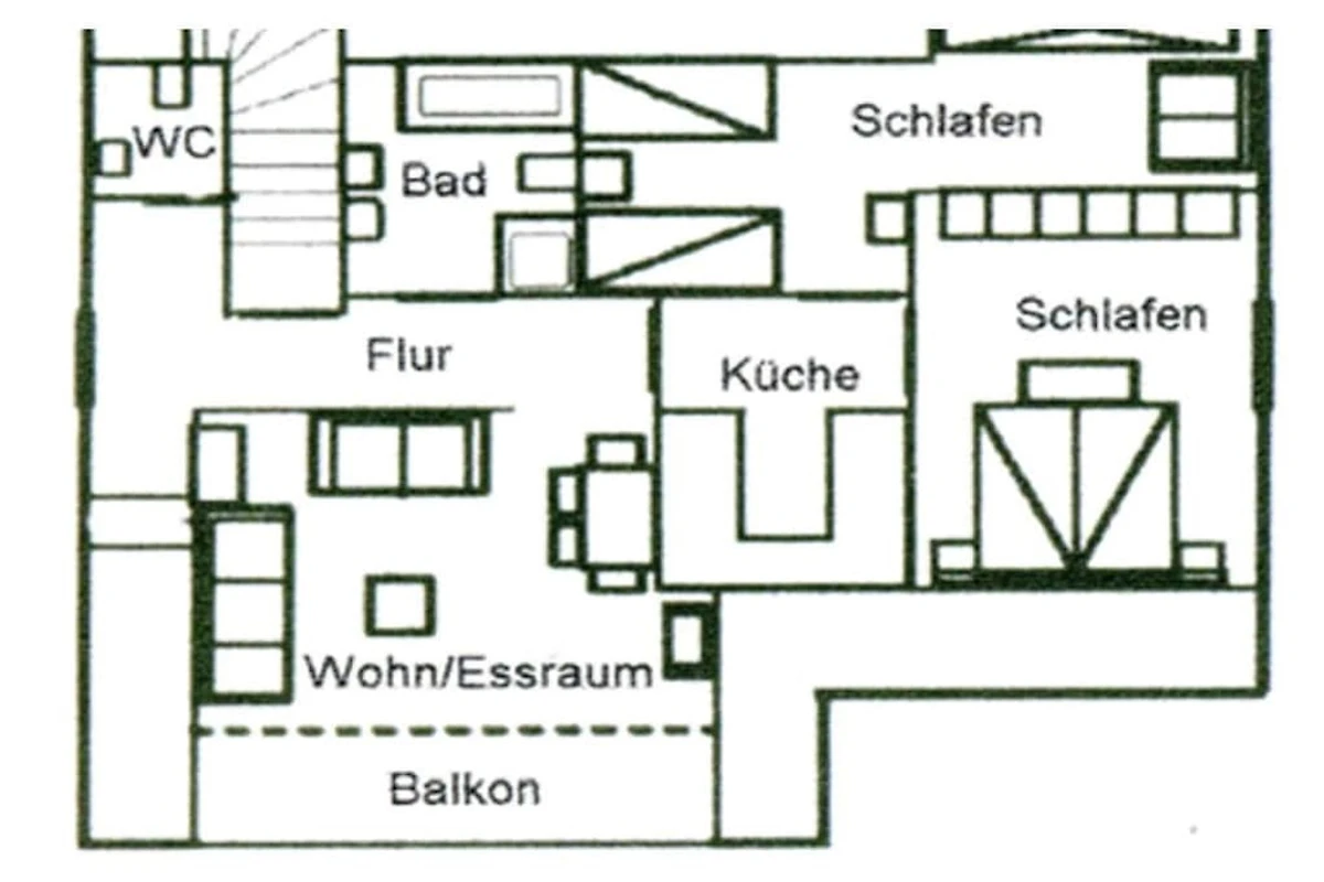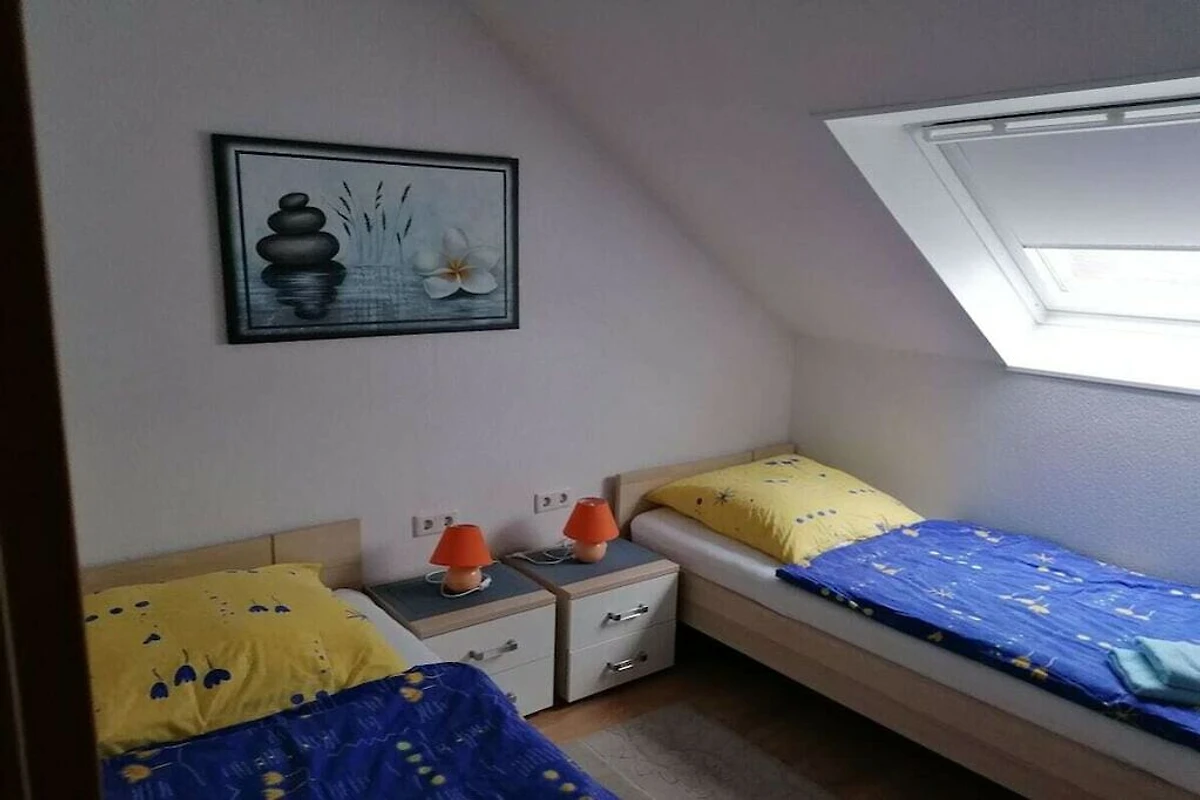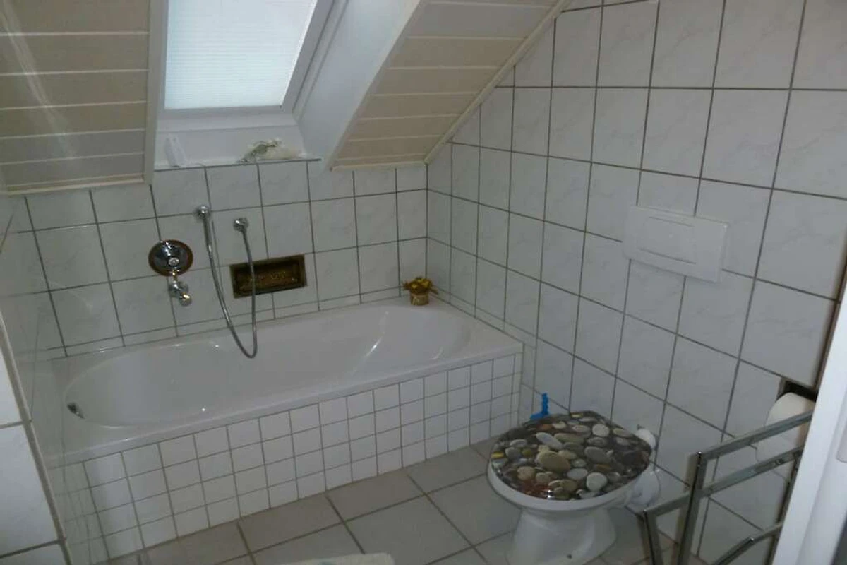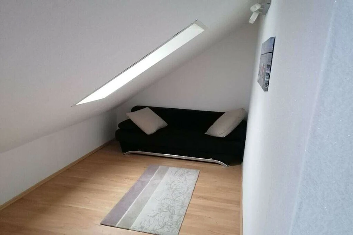 Soffitta: (Cucina separata(stufa, piano cottura, bollitore, tostapane, caffettiera, forno, forno a microonde, frigorifero, congelatore), Soggiorno / Pranzo(, , TV, TV, tavolo da pranzo), Camera da letto(, letto matrimoniale, letto per bambini), Camera da letto(letto singolo, letto singolo, letto singolo), Bagno, guest toilet(, Bagno di servizio, lavandino))