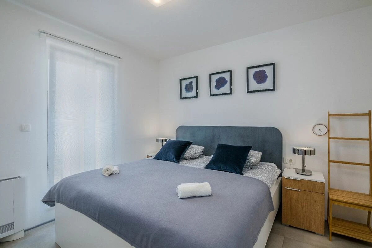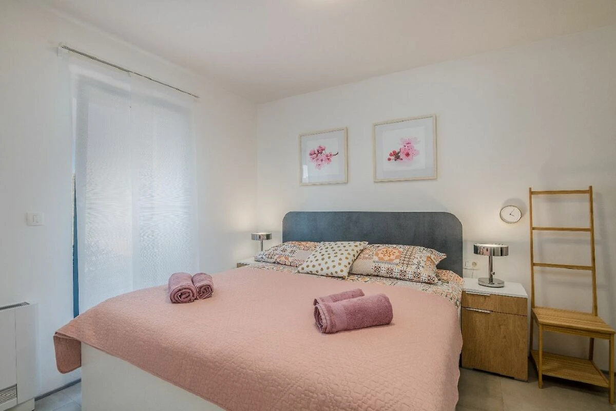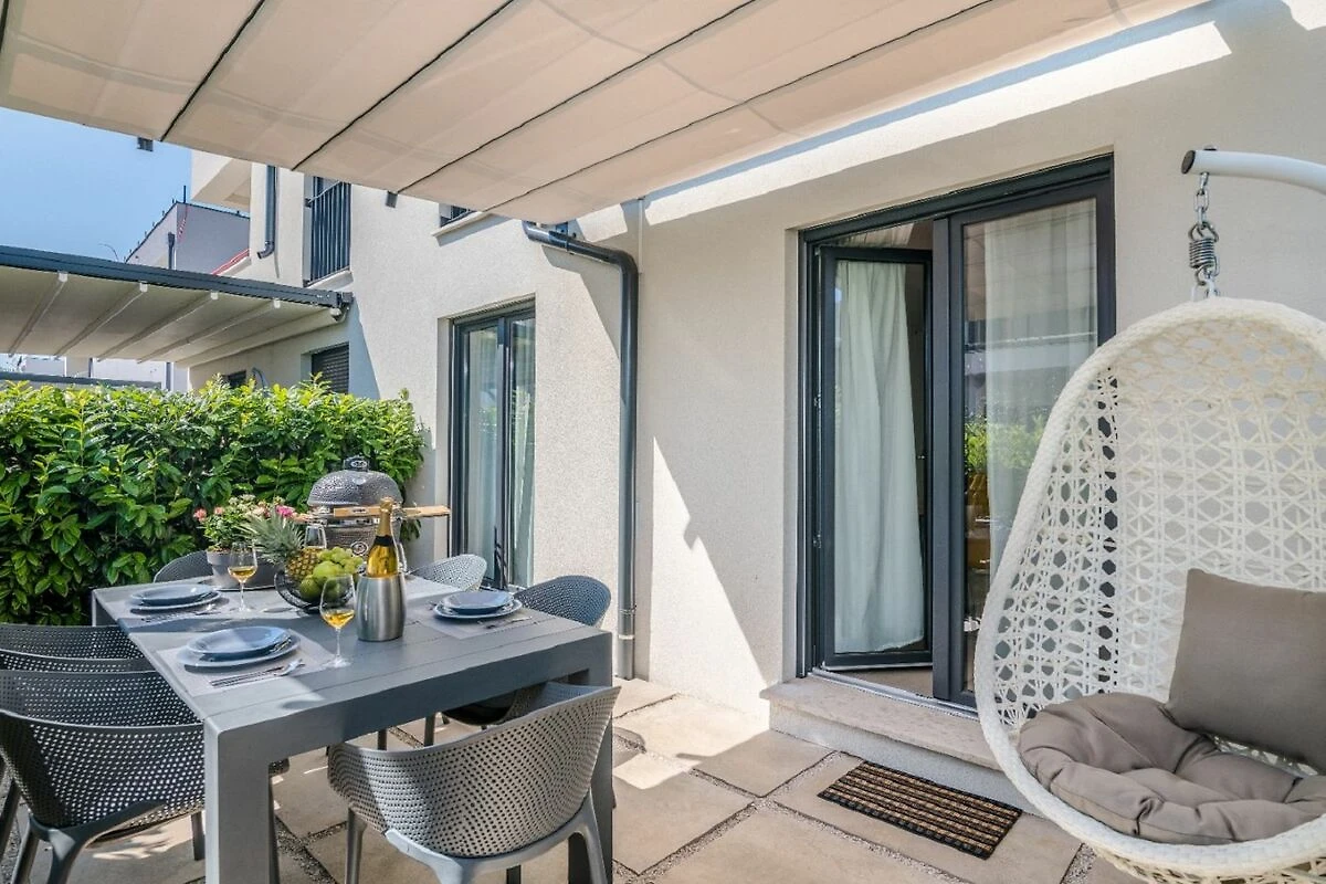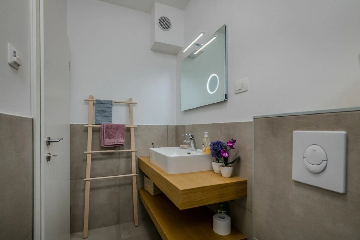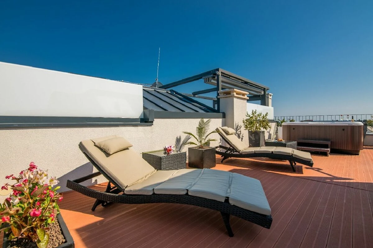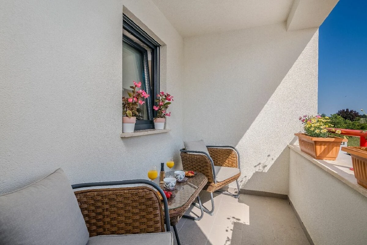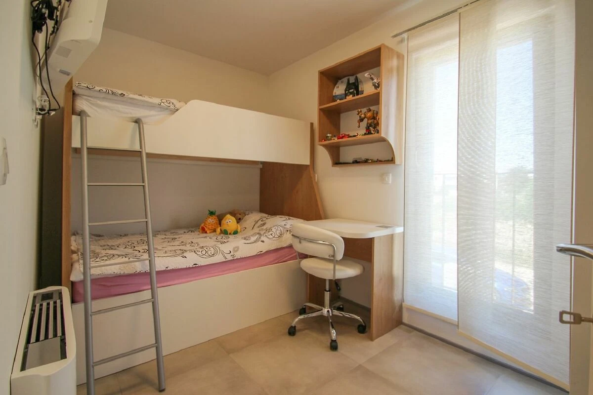 Benvenuti in questa oasi di pace e lusso nel cuore di Cittanova! La nostra incantevole casa offre tutto il necessario per una vacanza perfetta in Istria. Distribuita su tre piani, questa elegante casa può ospitare fino a sei persone e vi permette di trascorrere insieme momenti indimenticabili. Al piano terra, siete accolti da un ampio soggiorno che conduce a una piacevole terrazza, ideale per serate rilassanti o per un caffè mattutino con vista sulla campagna circostante. La cucina con sala da pranzo è dotata di tutto il necessario per preparare pasti deliziosi. C'è anche una camera matrimoniale con bagno privato, che offre intimità e comfort. Al primo piano si trovano altre due eleganti camere da letto, ognuna con il proprio carattere: una con un comodo letto matrimoniale e bagno privato, l'altra con un comodo letto a castello, perfetto per bambini o amici. Inoltre, al primo piano si trovano una seconda cucina e un bagno con vasca, che offrono ulteriore funzionalità e comfort. Ma la vera magia avviene sulla terrazza sul tetto, dove troverete una vasca idromassaggio e comode sedie a sdraio. Lasciatevi coccolare dalle acque rinfrescanti della vasca idromassaggio mentre vi godete la vista panoramica sui tetti circostanti e sul tramonto.