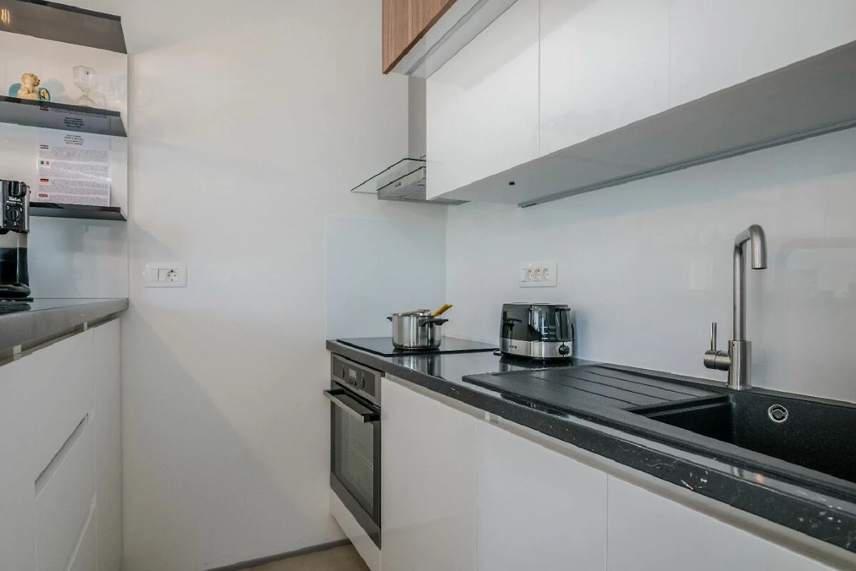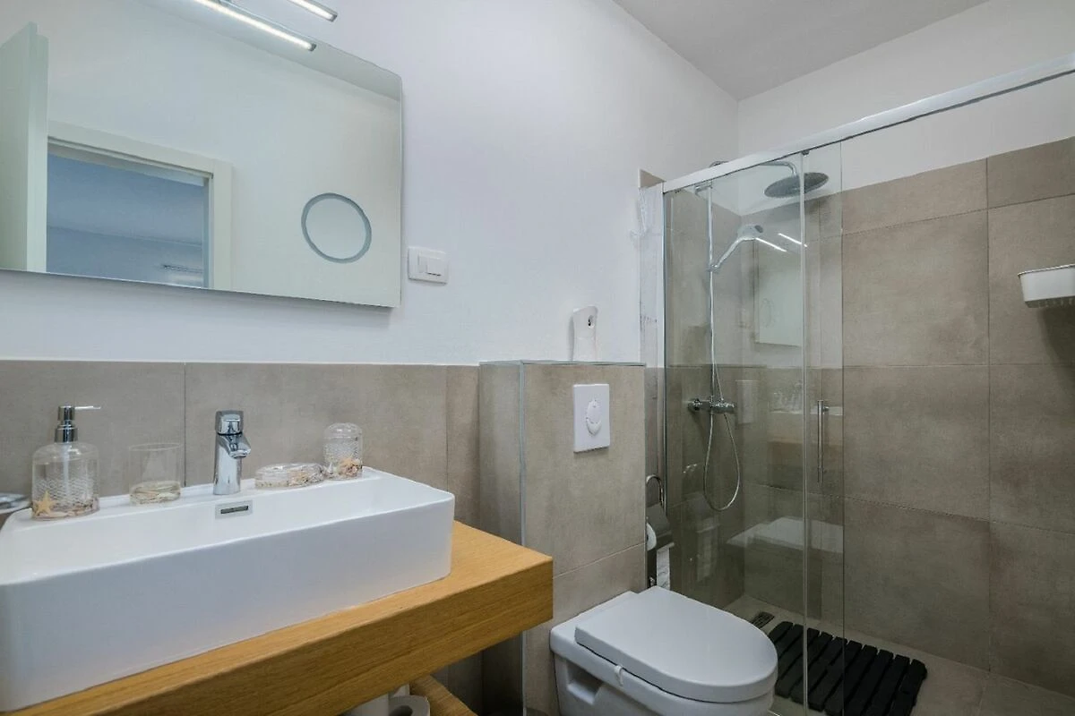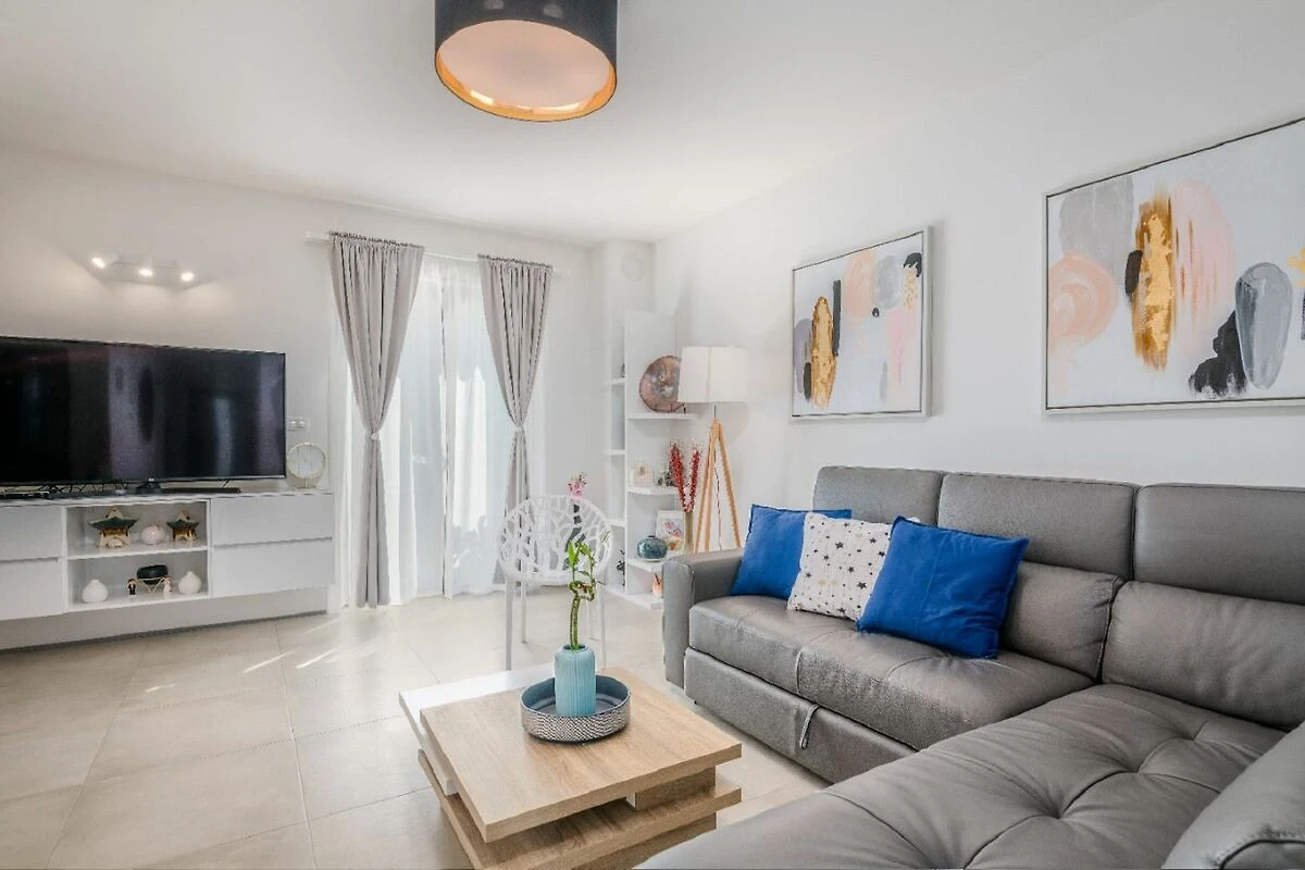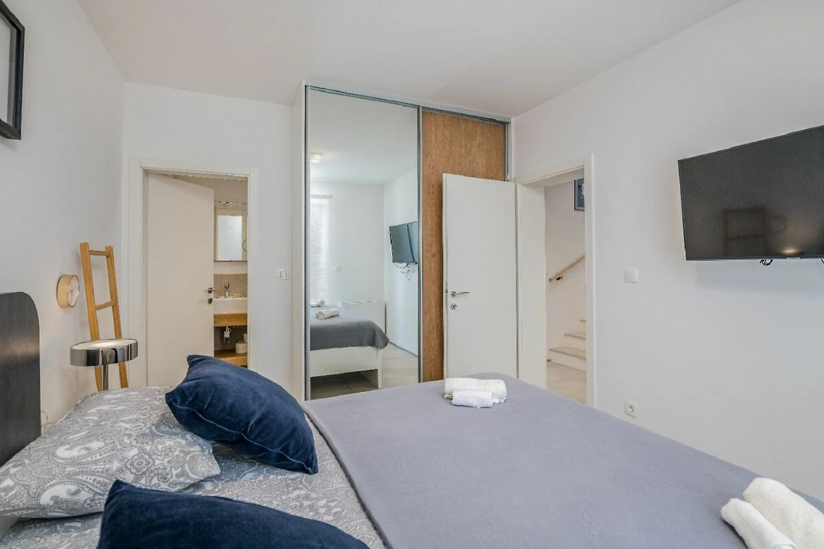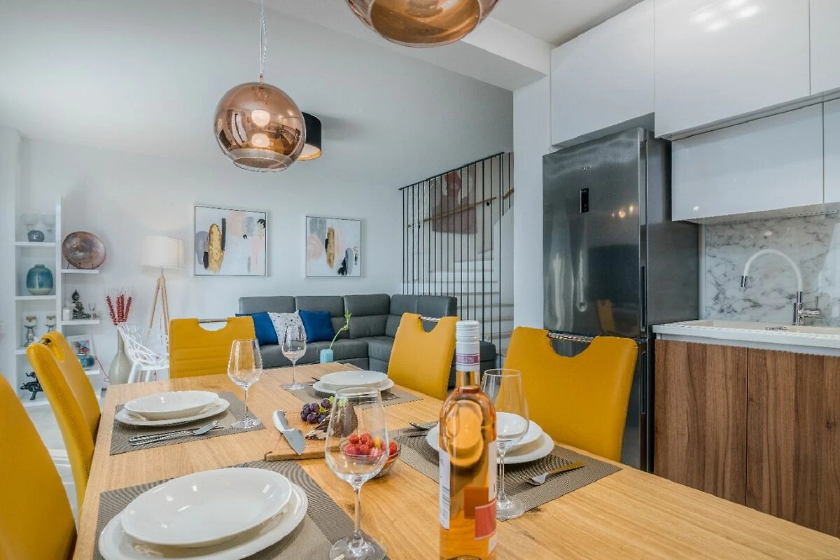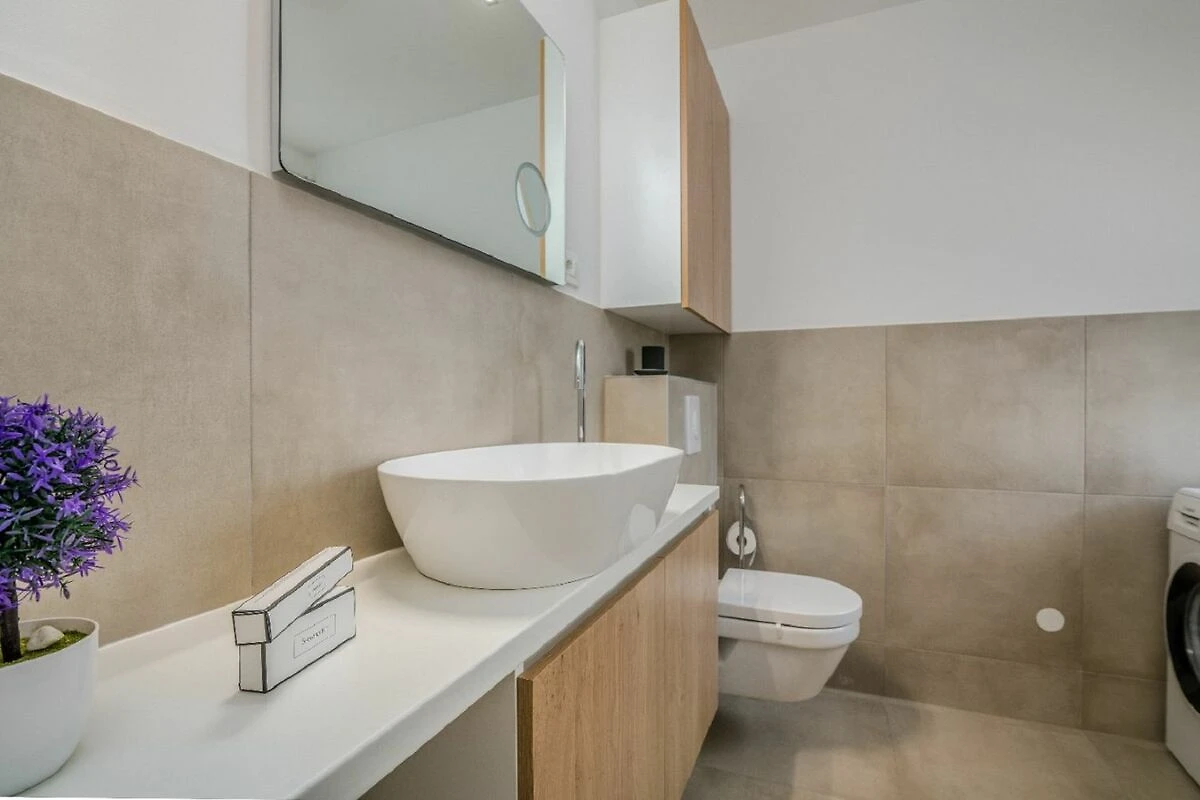 Benvenuti in questa oasi di pace e lusso nel cuore di Cittanova! La nostra incantevole casa offre tutto il necessario per una vacanza perfetta in Istria. Distribuita su tre piani, questa elegante casa può ospitare fino a sei persone e vi permette di trascorrere insieme momenti indimenticabili. Al piano terra, siete accolti da un ampio soggiorno che conduce a una piacevole terrazza, ideale per serate rilassanti o per un caffè mattutino con vista sulla campagna circostante. La cucina con sala da pranzo è dotata di tutto il necessario per preparare pasti deliziosi. C'è anche una camera matrimoniale con bagno privato, che offre intimità e comfort. Al primo piano si trovano altre due eleganti camere da letto, ognuna con il proprio carattere: una con un comodo letto matrimoniale e bagno privato, l'altra con un comodo letto a castello, perfetto per bambini o amici. Inoltre, al primo piano si trovano una seconda cucina e un bagno con vasca, che offrono ulteriore funzionalità e comfort. Ma la vera magia avviene sulla terrazza sul tetto, dove troverete una vasca idromassaggio e comode sedie a sdraio. Lasciatevi coccolare dalle acque rinfrescanti della vasca idromassaggio mentre vi godete la vista panoramica sui tetti circostanti e sul tramonto.