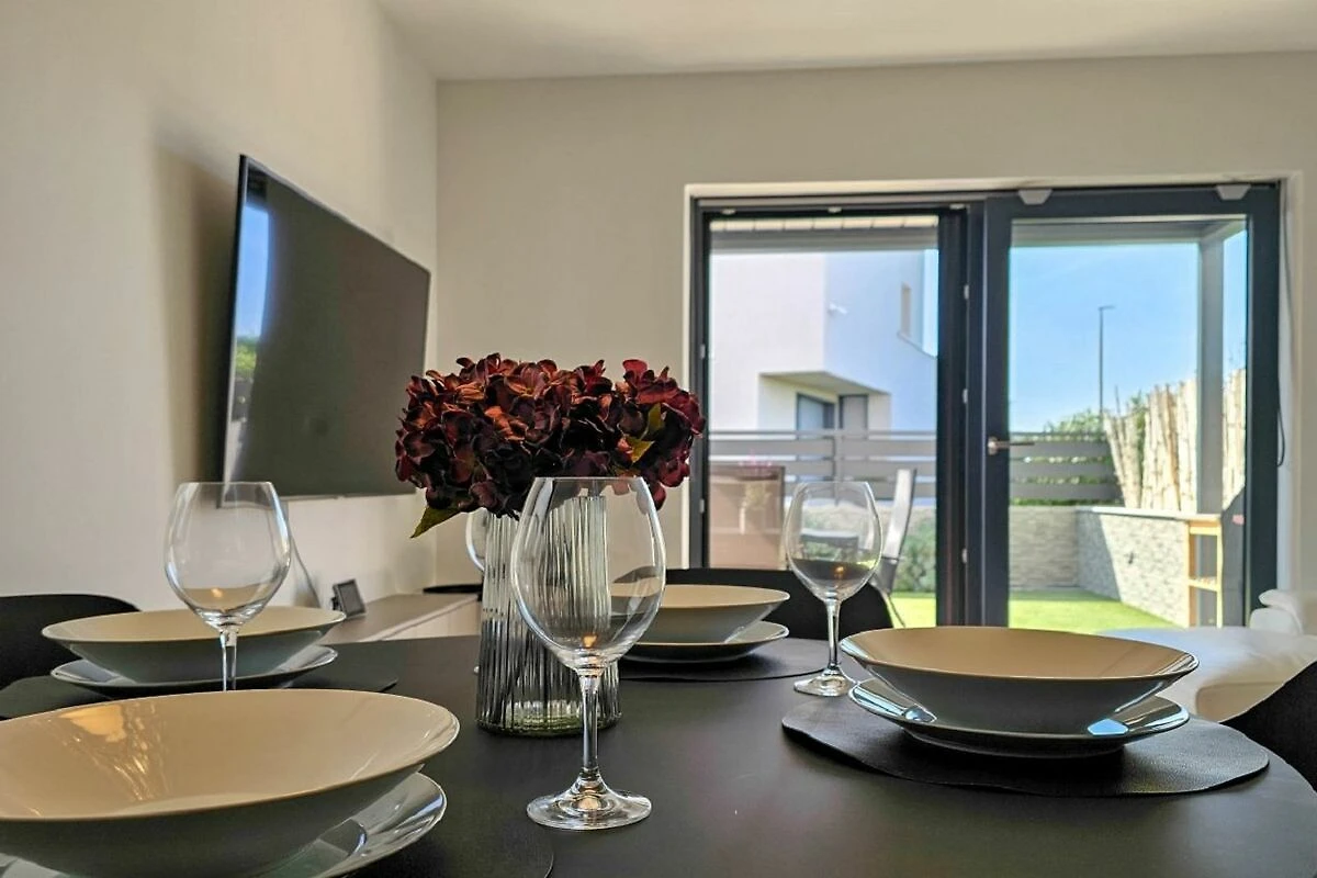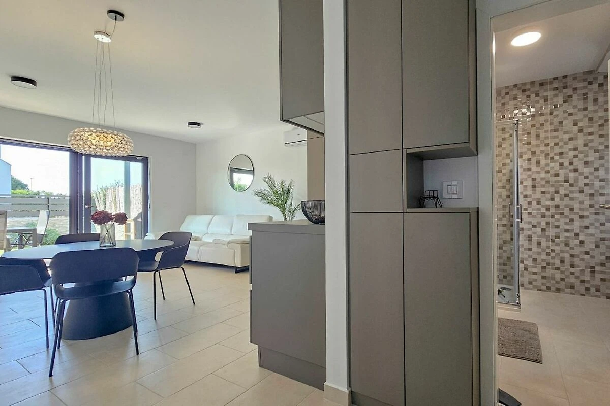 Benvenuti nella nostra bellissima casa a Cittanova, situata nel cuore dell'incantevole Istria! Questa affascinante casa a due piani può ospitare comodamente fino a quattro persone, ideale per famiglie o piccoli gruppi di amici. Al piano terra troverete una cucina ben attrezzata collegata a una spaziosa zona giorno e pranzo, oltre a un bagno. La cucina è dotata di tutto il necessario per preparare pasti deliziosi, mentre il soggiorno ha accesso a una terrazza e a un bellissimo giardino. La terrazza è dotata di comodi posti a sedere e di un barbecue, perfetto per trascorrere serate rilassanti guardando il tramonto. Al piano superiore si trovano tre accoglienti camere da letto e un altro bagno, che offrono privacy e comfort durante il soggiorno. L'appartamento è dotato di aria condizionata, internet e TV satellitare, per garantire un soggiorno piacevole durante tutta la vacanza.