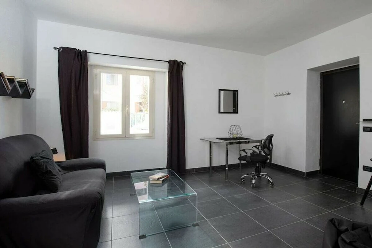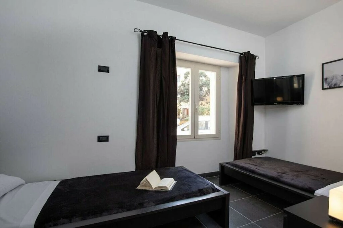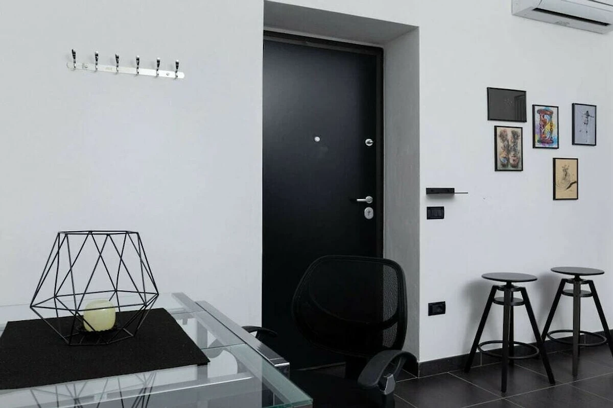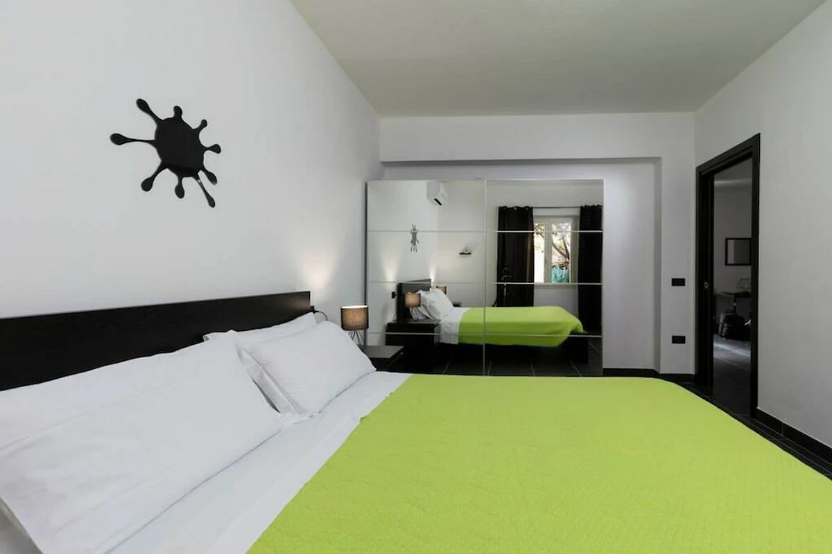 L'appartamento si trova al piano terra e si apre sulla zona giorno, arredata con un divano doppio, una televisione e un tavolo da pranzo. Da qui gli ospiti hanno accesso alla cucina completamente attrezzata con fornelli elettrici, macchina per caffè espresso e bollitore. La zona notte è composta da due camere da letto, entrambe dotate di comodini e armadio: la prima con letto matrimoniale e televisione, la seconda con due letti singoli. Un bagno con doccia completa la struttura.