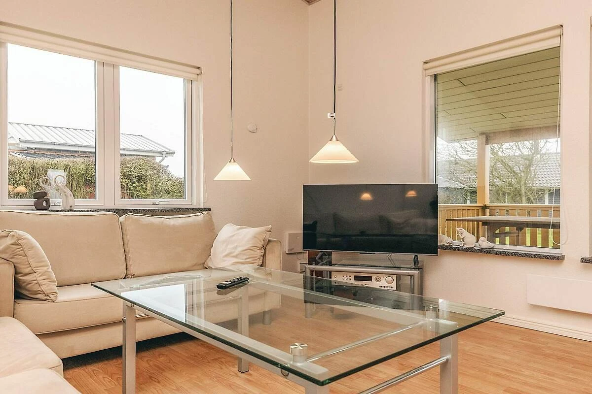 Cucina separata(mobile cucina(elettrico), caffettiera, forno a microonde, lavastoviglie, frigo con congelatore), Soggiorno/camera da letto(TV(canali televisivi tedeschi, canali TV danesi), chromecast), Camera da letto(letto matrimoniale, seggiolone), Camera da letto(letto matrimoniale), Camera da letto(letto matrimoniale), Bagno(asciugabiancheria, lavabo, doccia, WC, lavatrice), Bagno(lavabo, WC), Soppalco aperto(2x letto pieghevole (1 pers.)), vasca(all'esterno, riscaldata, 5 persone), vasca idromassaggio(all’interno, riscaldata, 2 persone), sauna(all’interno, 4 persone), riscaldamento(elettrico), terrazza, mobili da giardino, lettini prendisole