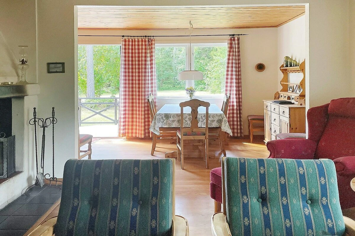 Cucina separata(mobile cucina(elettrico), caffettiera, forno a microonde, frigorifero, congelatore(60-99L)), Soggiorno/camera da letto(caminetto, chromecast), Camera da letto(2x letto a castello), Camera da letto(letto matrimoniale, letto per bambini, seggiolone), Camera da letto(letto matrimoniale, letto per bambini), Bagno(lavabo, doccia, WC, lavatrice), letto matrimoniale, sauna(all’interno, 6 persone), riscaldamento(elettrico), giardino, mobili da giardino, letto per bambini
