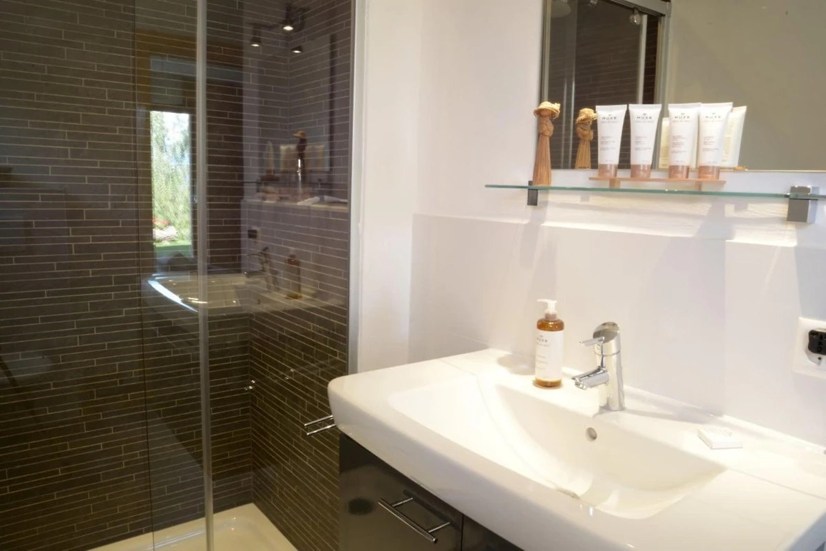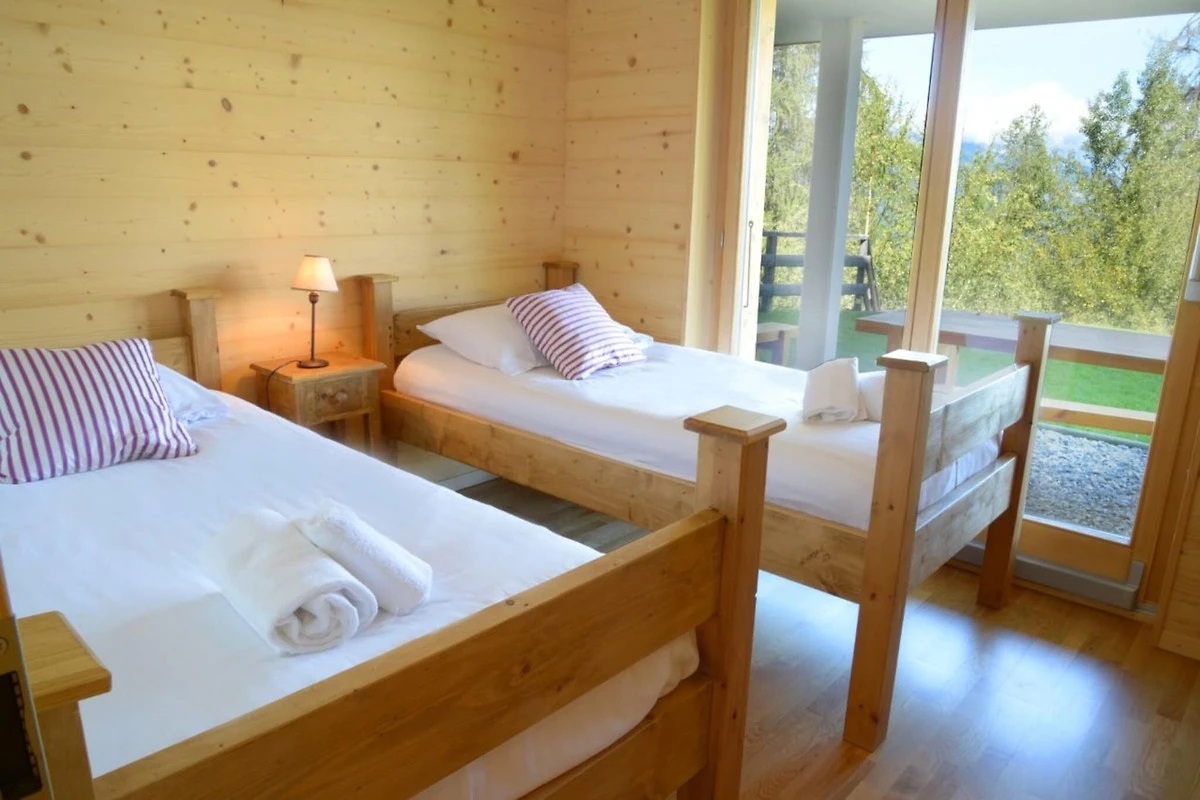 Lo chalet vanta quattro camere da letto ben arredate: due con letti matrimoniali (160x200) e due con letti singoli separati (90x200), garantendo ampio spazio per dormire per tutti. Lo chalet comprende anche un bagno con vasca, due bagni con doccia e un WC separato. Esci per goderti il balcone e il giardino, dove puoi rilassarti con viste mozzafiato sulla valle del Rodano e sulle montagne circostanti, completo di mobili da giardino e un barbecue a gas per deliziosi pasti all'aperto. Ulteriori servizi includono una lavatrice, un'asciugatrice e due posti auto all'aperto.