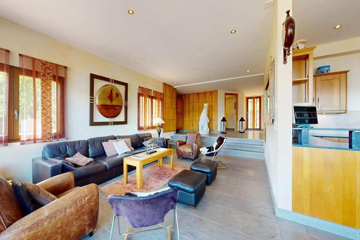 Lo chalet comprende cinque camere da letto ben arredate, ciascuna progettata per il comfort. Le camere da letto 1 e 2 dispongono di letti matrimoniali e bagni privati, mentre le camere da letto 3 e 4 hanno due letti singoli ciascuna e condividono un bagno. La quinta camera da letto comprende un letto a castello, due lettini e un seggiolone, perfetti per le famiglie. Esci su una terrazza arredata di 50 m², ideale per rilassarti o fare un barbecue mentre ammiri la vista mozzafiato. L'ampio giardino offre ampio spazio per giocare all'aperto, con un'altalena e uno scivolo per i bambini. La piscina interna, dotata di soffitto a stelle e impianto audio, offre un'esperienza di relax unica.