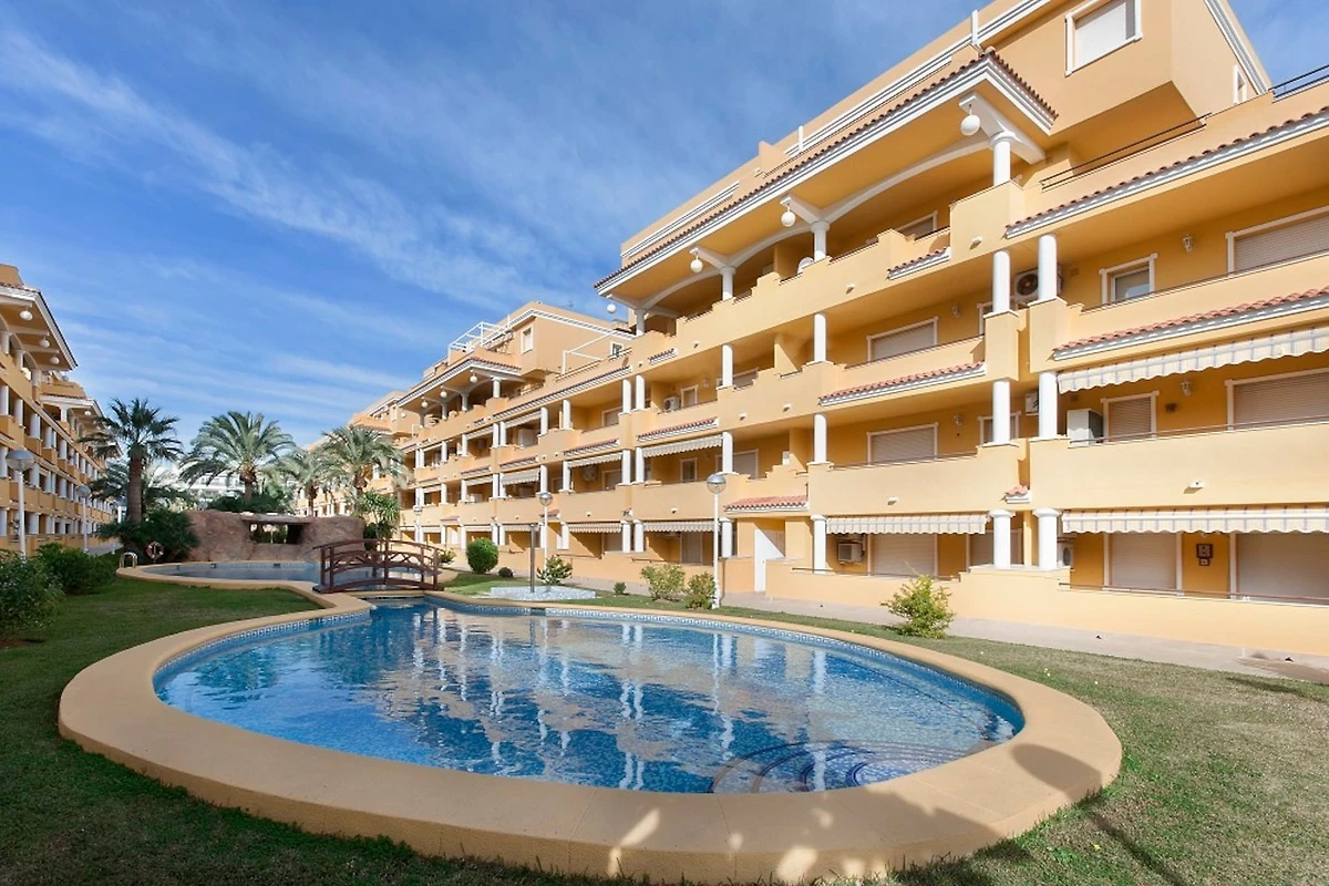 Taras apartamentu z widokiem na części wspólne rezydencji jest umeblowany tak, aby można było zjeść śniadanie lub letnią kolację. Na osiedlu znajduje się około 2000 m2 części wspólnych z trawą i ławkami, dzięki czemu Państwa dzieci mogą bawić się na świeżym powietrzu przy bezpieczeństwie całego osiedla, które jest ogrodzone. Posiada dwa baseny dla dorosłych i dwa dla dzieci ze skałami i wodospadami. Kąpiel w basenie czy wylegiwanie się na słońcu będą przyjemnościami, którymi będziesz mógł cieszyć się podczas pobytu. Jeśli wolisz morze, plaża Las Marines znajduje się zaledwie 350 metrów od apartamentu.