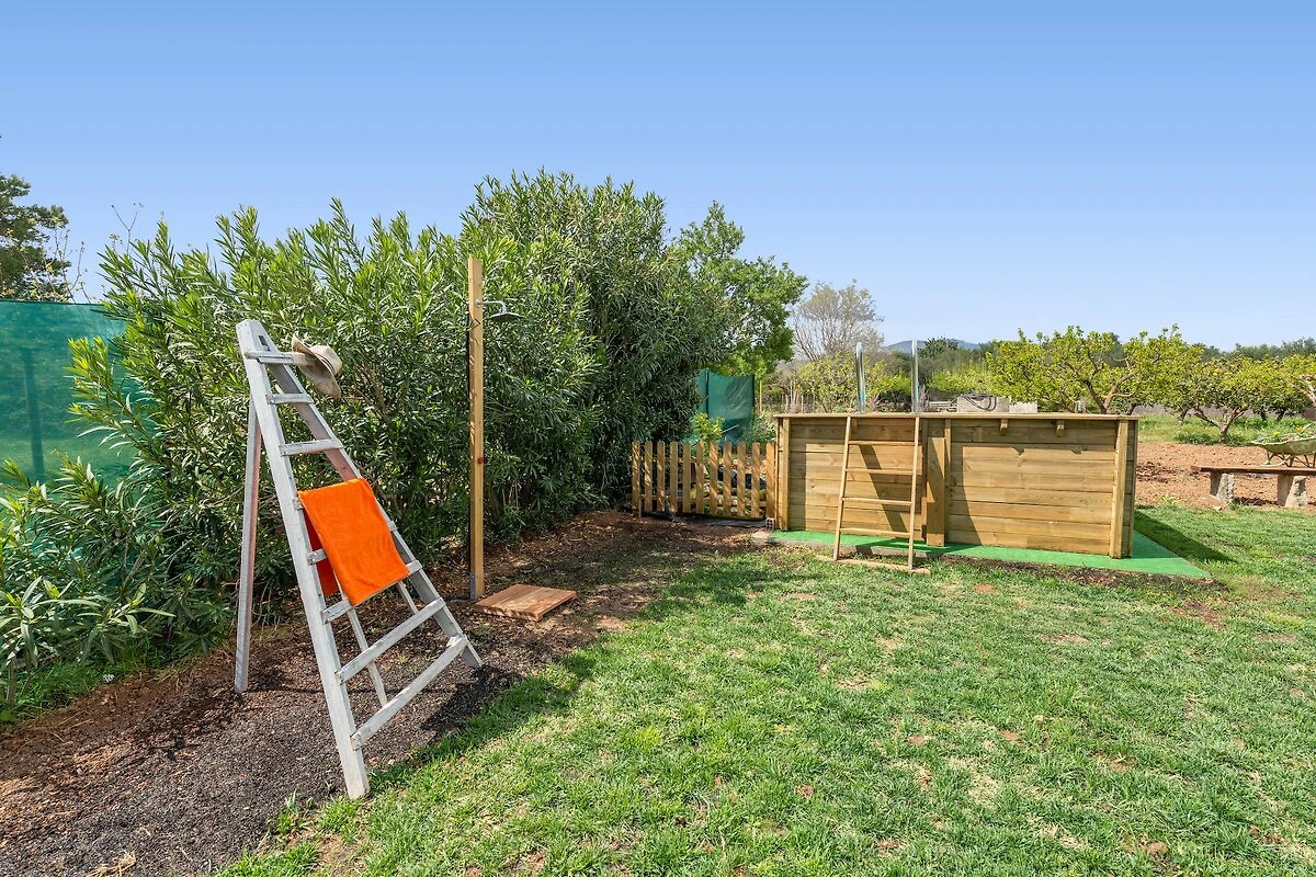 Z zewnątrz dom robi wrażenie, znajduje się tam podwyższony basen chlorowy o wymiarach 3m x 3m i głębokości 1,2m, który będzie idealny do ochłodzenia się po opalaniu na dostępnych leżakach, podczas gdy maluchy bawią się w ogrodzie. Można przygotować pysznego grilla i wspólnie cieszyć się nim w jadalni na świeżym powietrzu lub przedłużyć wieczory w towarzystwie najbliższych. Dom jest ogrodzony, w pobliżu nie ma sąsiadów, dzięki czemu będziesz cieszyć się całkowitą prywatnością.