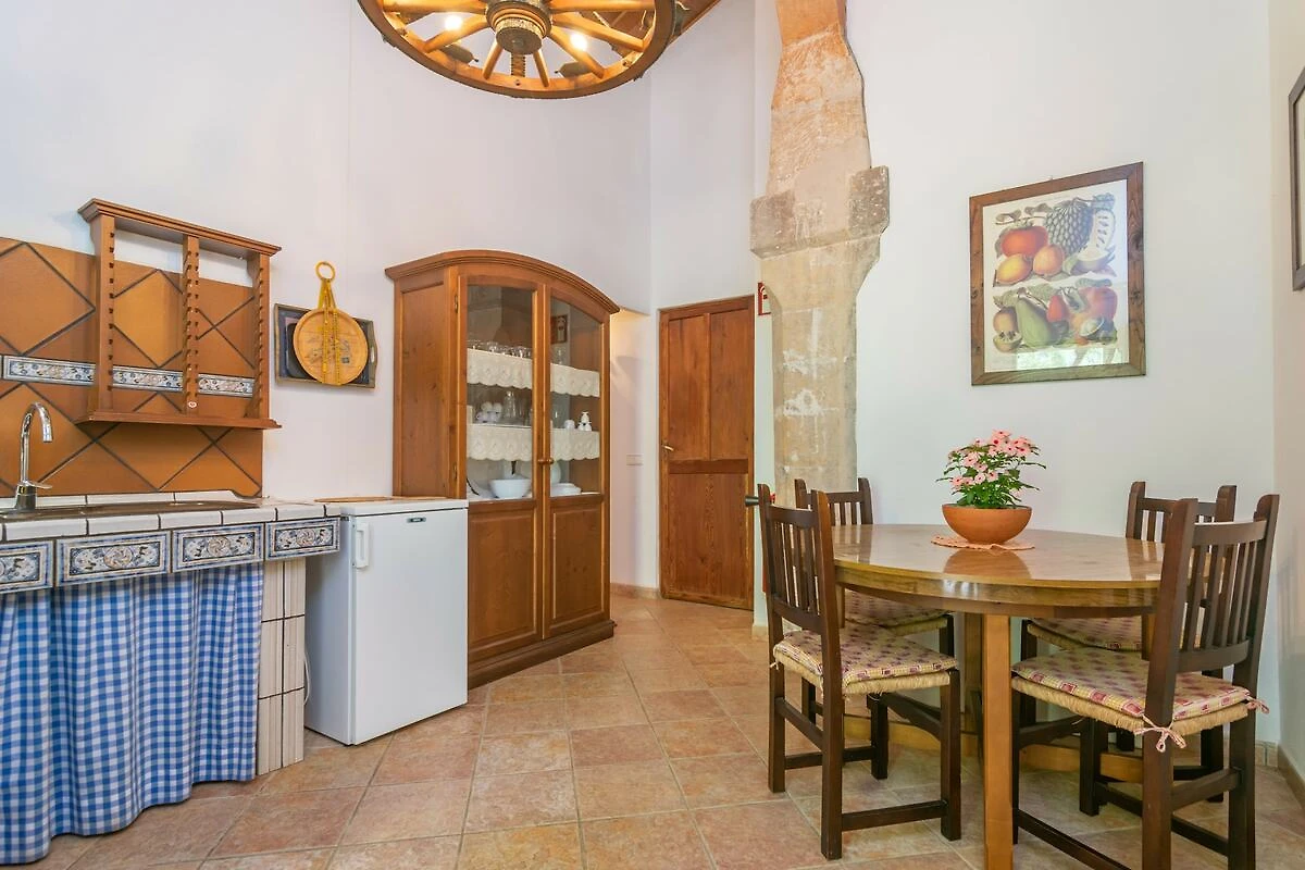 Wnętrze nieruchomości, utrzymane w typowym stylu majorkańskiej posiadłości, z kamiennymi ścianami, zostało zaprojektowane tak, aby zapewnić Ci wypoczynek, na który zasługujesz. Ich parterowe mieszkanie posiada kuchnię wyposażoną w kuchenkę gazową i wszystkie niezbędne sprzęty do wygodnego gotowania. Przed snem znajdziesz dwie sypialnie, jedną z podwójnym łóżkiem i drugą z dwoma pojedynczymi łóżkami. Obie sypialnie wyposażone są w wentylator, ogrzewanie olejowe i szafę. Całość uzupełnia łazienka z wanną. Mogą korzystać z pralki. Jeśli podróżujesz z dzieckiem, możemy zapewnić Ci łóżeczko i krzesełko do karmienia.