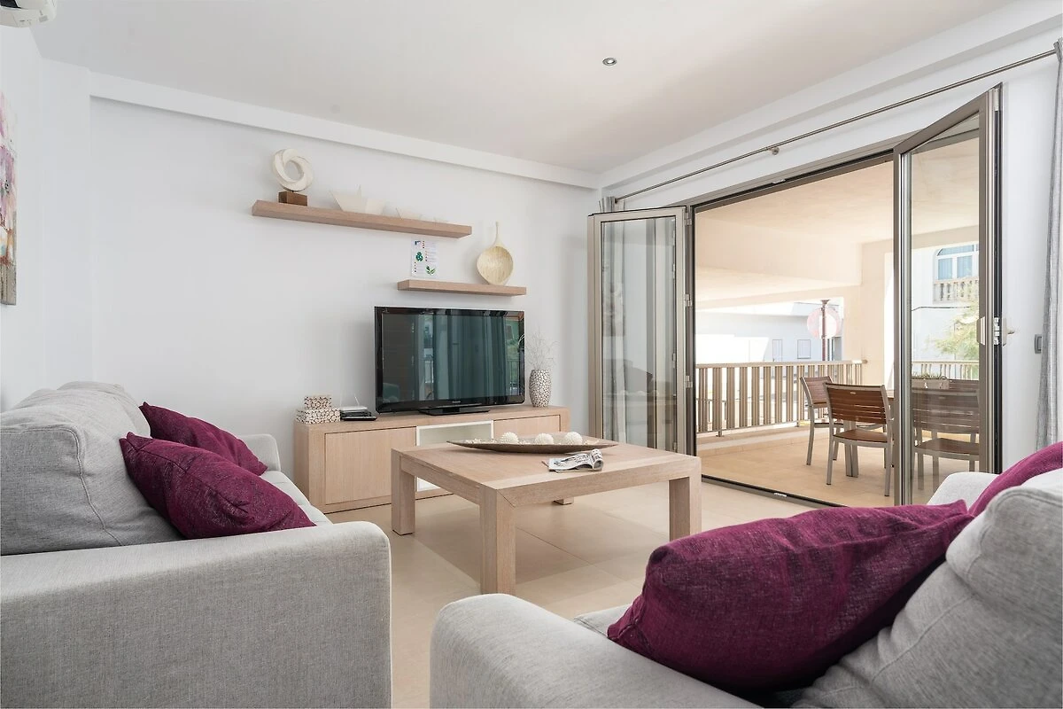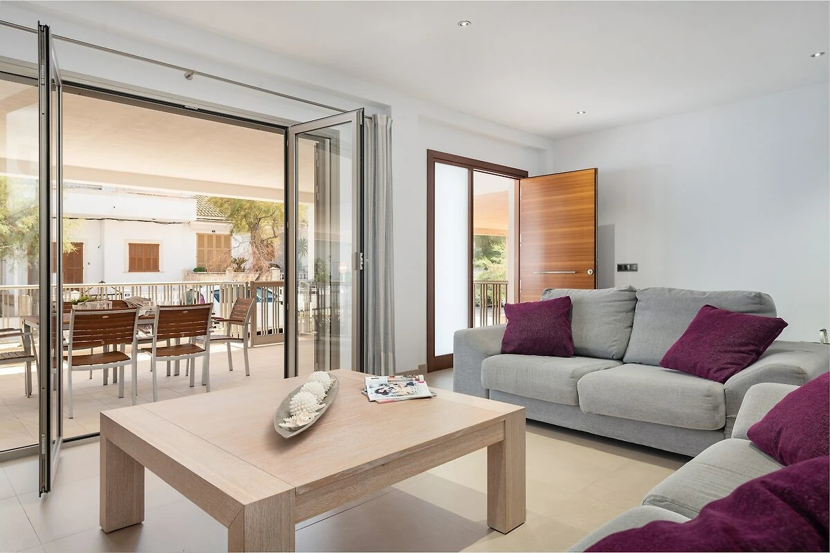 Questo appartamento al piano terra a Can Picafort offre uno spazio luminoso e accogliente con una terrazza privata, perfetta per pranzi in famiglia o una tranquilla serata all'aperto. La terrazza si affaccia sulla strada verso il mare, creando un ambiente sereno mentre si cena o ci si rilassa. All'interno, il moderno soggiorno è dotato di TV satellitare e aria condizionata, mentre la cucina abitabile completamente attrezzata con piano cottura in vetroceramica rende la preparazione dei pasti semplice e pratica. Gli ospiti troveranno anche una zona lavanderia con lavatrice e ferro da stiro, per garantire il massimo comfort anche durante i soggiorni più lunghi.