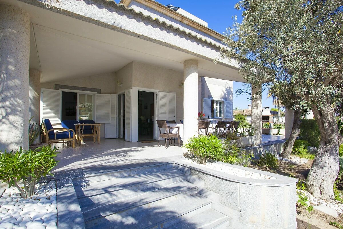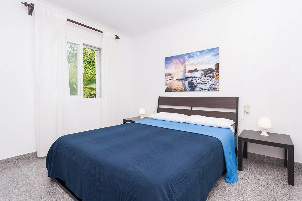 La casa con 220 m2 è distribuita su 2 piani. Ha 5 camere da letto; tre di loro al piano terra con letto matrimoniale (una con bagno interno con vasca), e due al 1° piano; una con due letti singoli e una con un letto matrimoniale, aria condizionata e bagno con doccia. Una culla e un seggiolone sono disponibili su richiesta. Inoltre c'è 1 bagno al piano terra.