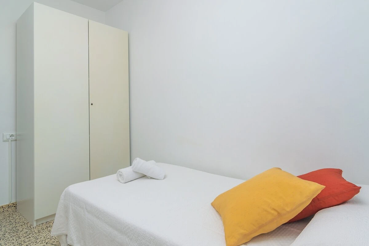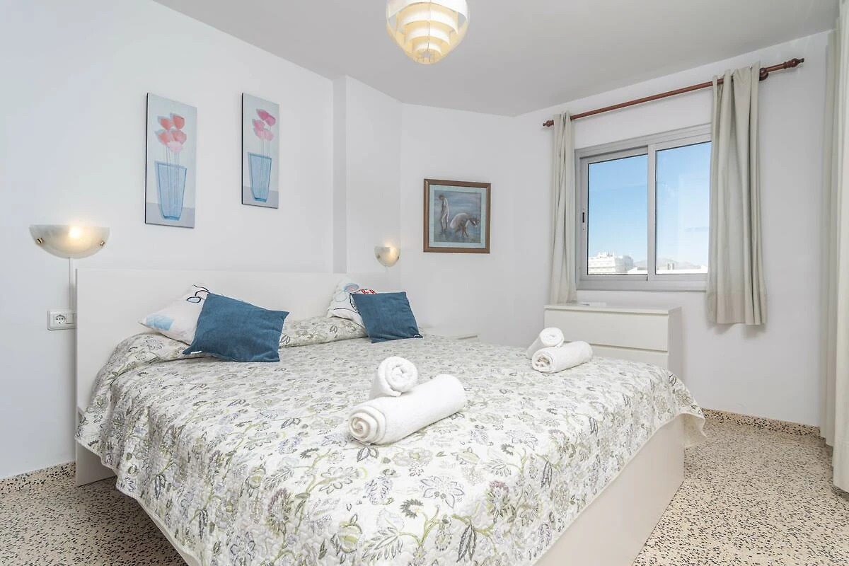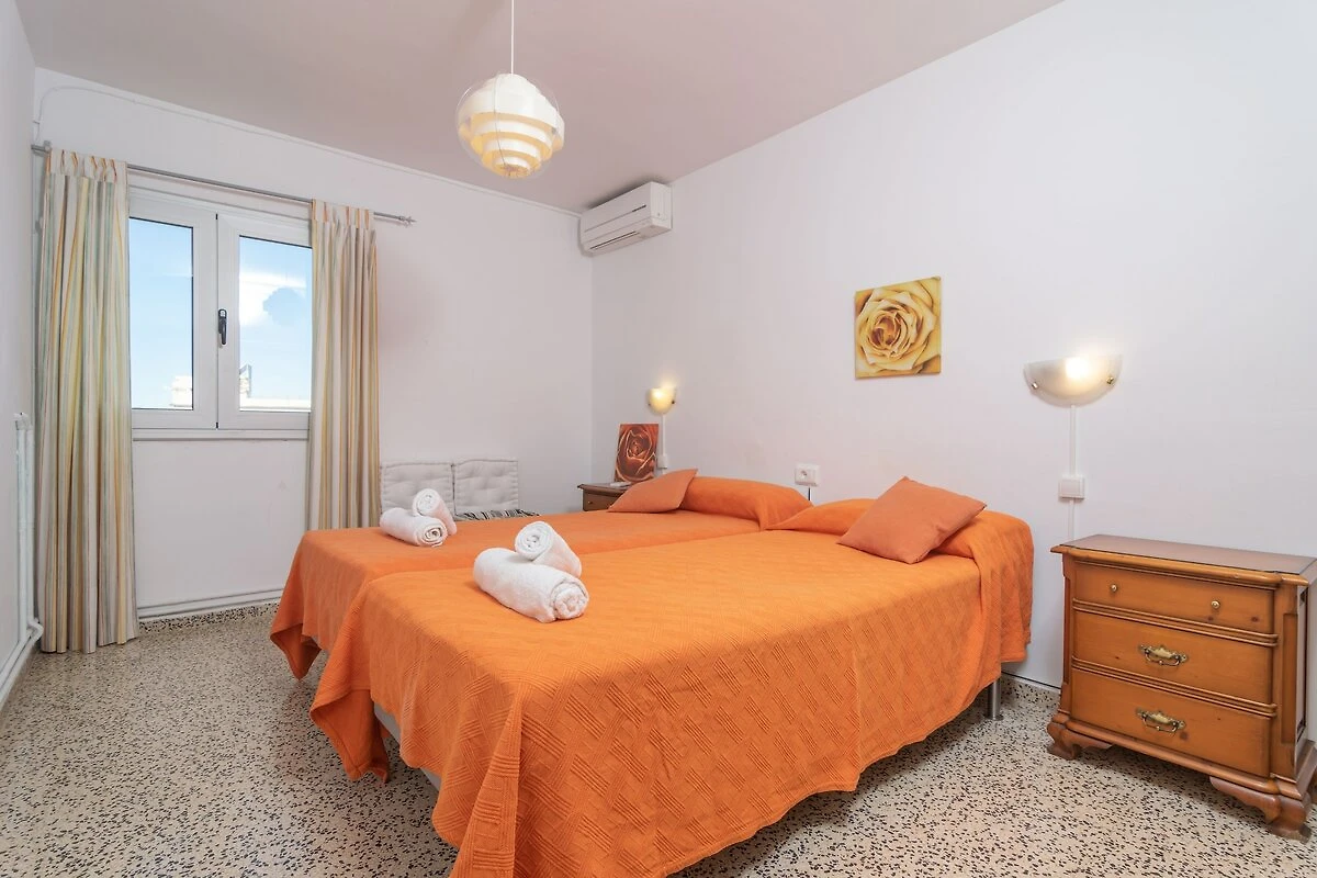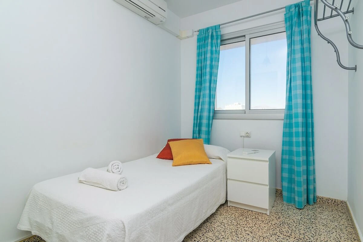Questo appartamento al quarto piano, raggiungibile tramite ascensore, dispone di un'ampia zona soggiorno-pranzo-cucina dotata di aria condizionata, TV satellitare e piano cottura in vetroceramica. Ci sono tre camere da letto, tutte climatizzate: una con letto matrimoniale e accesso a una seconda terrazza, un'altra con due letti singoli e una terza con un letto singolo. L'alloggio comprende un bagno con vasca, lavatrice, ferro e asse da stiro. Le famiglie che viaggiano con bambini possono richiedere una culla e un seggiolone per una maggiore comodità.