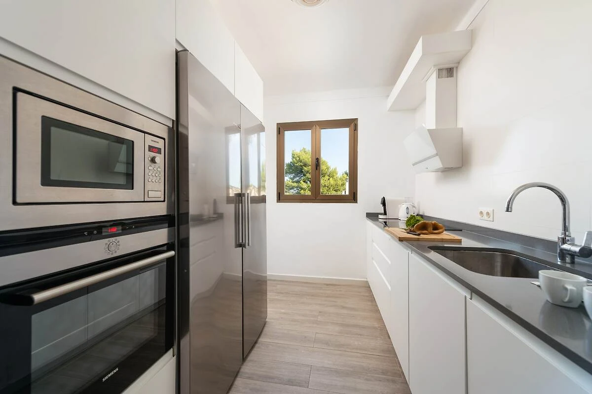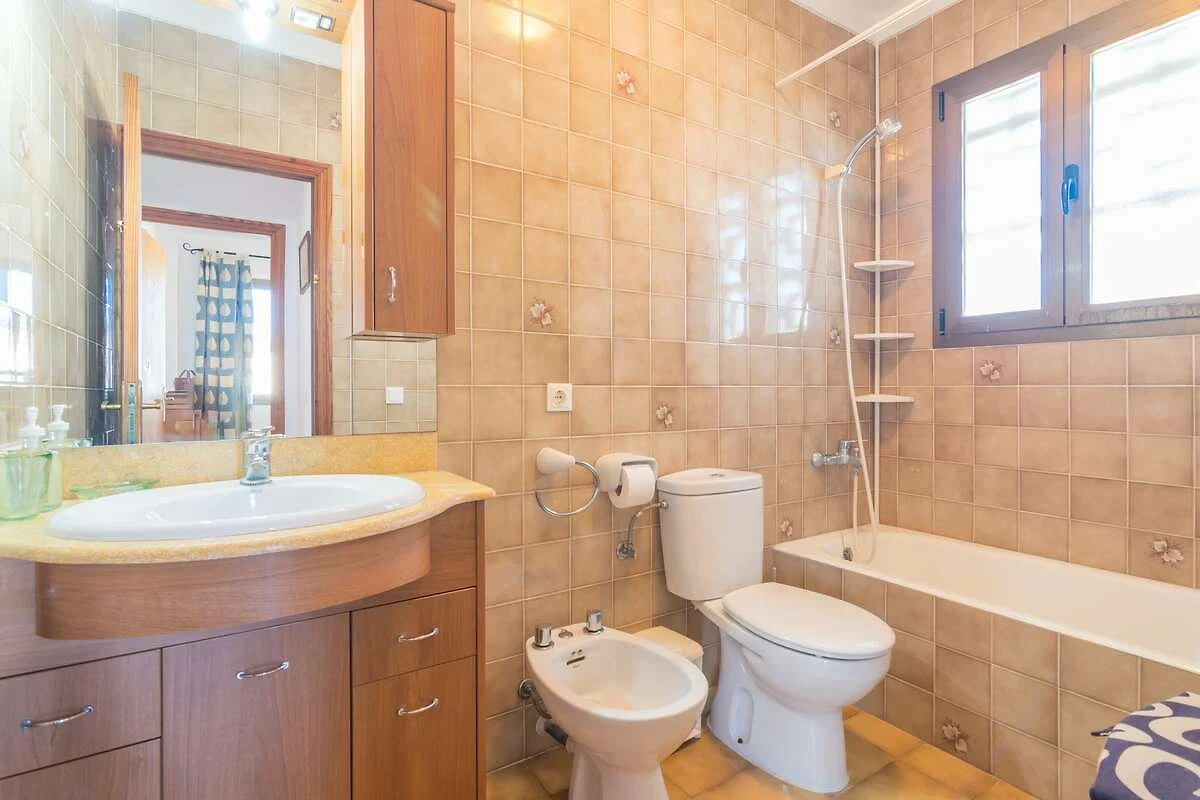 Wewnątrz czeka na Ciebie wygodny i przestronny salon-jadalnia z Smart TV, odtwarzaczem CD i DVD oraz klimatyzacją, co być może oznacza popołudnie gwarantowanej rozrywki. Następnie mamy kuchnię, całkowicie odnowioną i wyposażoną w płytę ceramiczną, piekarnik, kuchenkę mikrofalową i wszystko, czego potrzebujesz do gotowania w domu. Do wypoczynku przygotowano trzy pokoje z garderobą, jeden z podwójnym łóżkiem, wentylatorem i miejscem na łóżeczko i krzesełko do karmienia oraz dwa kolejne z dwoma pojedynczymi łóżkami w każdym. Domu dopełniają dwie łazienki, jedna z prysznicem, druga z wanną i oczywiście pralka, odkurzacz, żelazko i deska do prasowania.