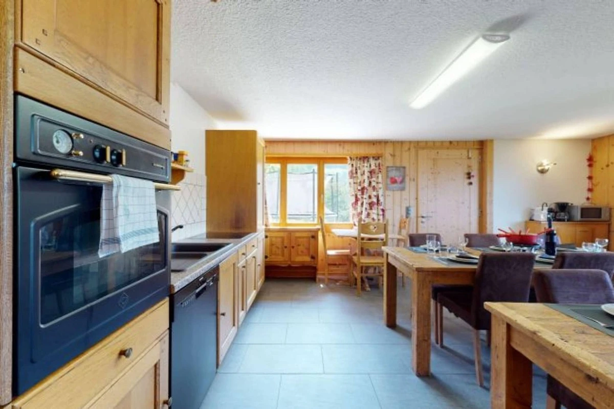 All'interno, il luminoso soggiorno è dotato di Wi-Fi e TV per l'intrattenimento, mentre la cucina a vista è completamente attrezzata con elettrodomestici moderni, tra cui una pentola per fonduta, per cucinare senza sforzo. Tre comode camere da letto con letti flessibili garantiscono notti di riposo. Ammesso agli animali domestici e situato in posizione strategica vicino ai negozi, con parcheggio invernale alla base della funivia, questo chalet coniuga perfettamente comfort, praticità e avventura.