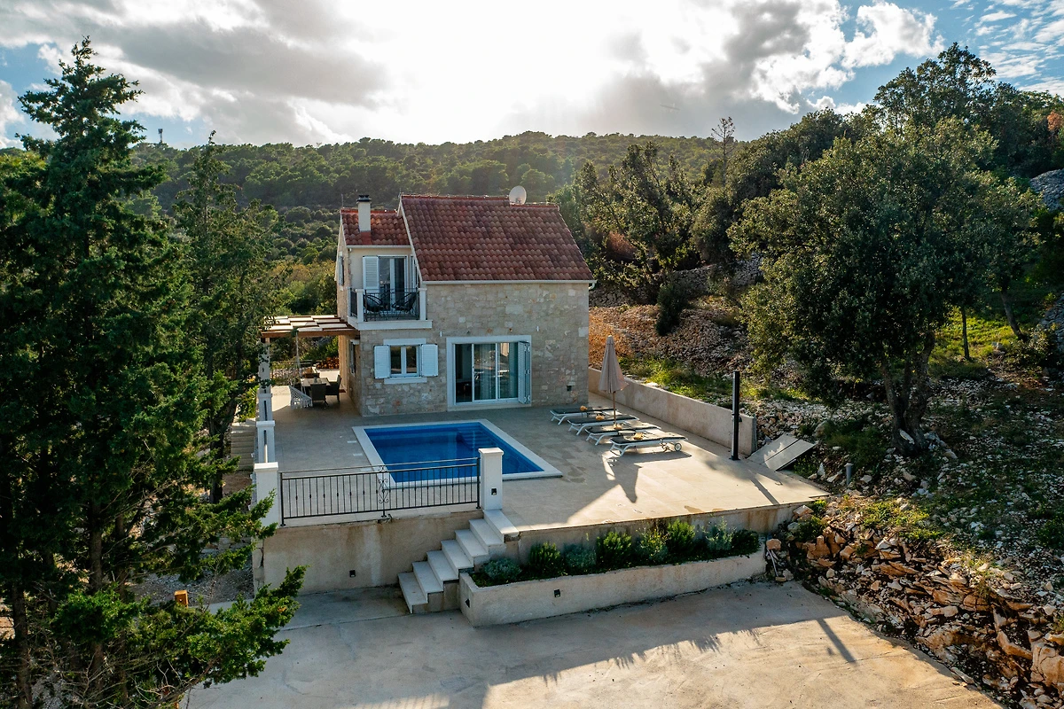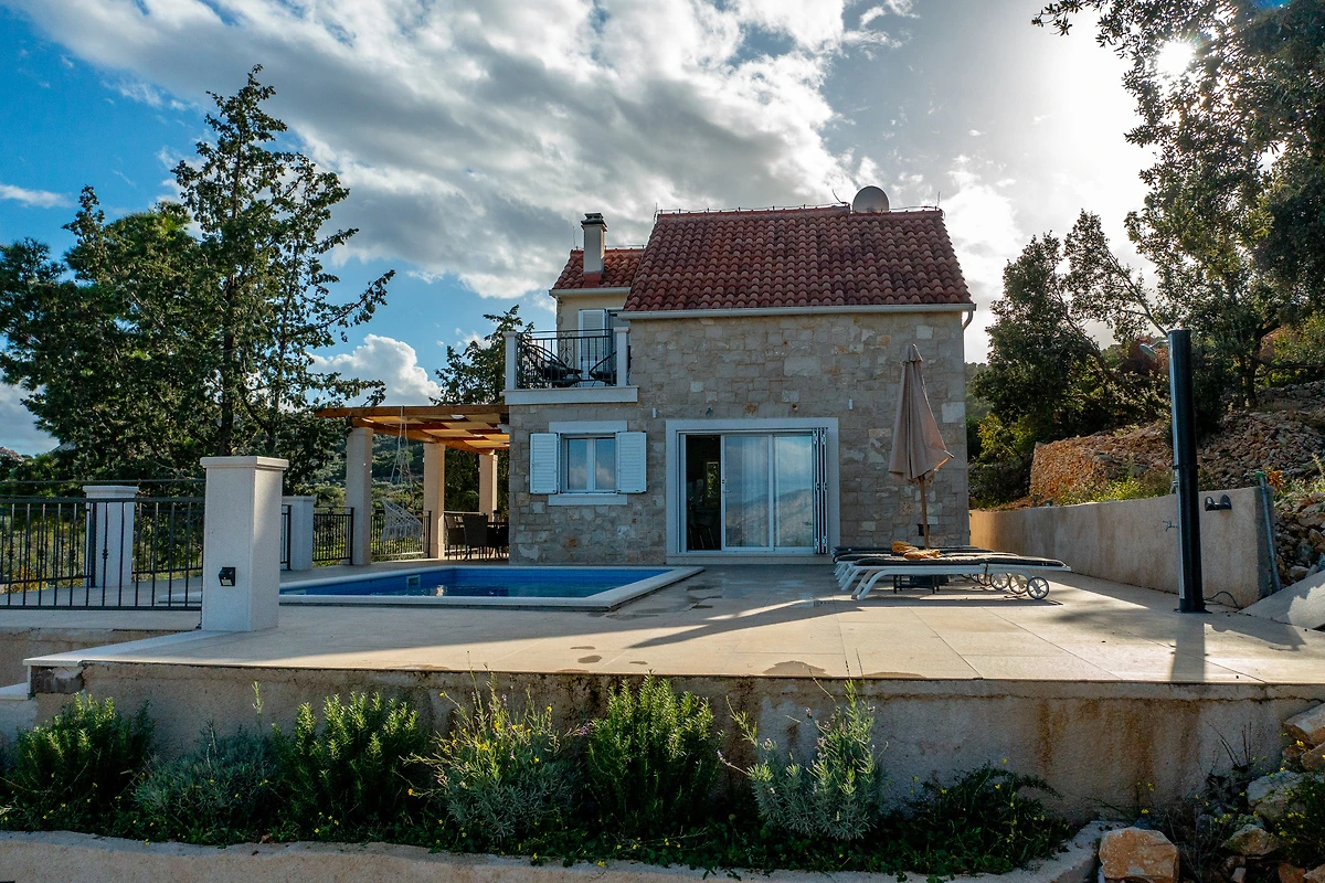 Provate l'esperienza di una fuga definitiva alla Emerald Hideaway Pool Villa, situata nella tranquilla isola di Brac Povlja, in Croazia. Questa lussuosa casa vacanze può ospitare comodamente fino a 5 persone nei suoi 70 metri quadrati di spazio abitativo splendidamente progettato.