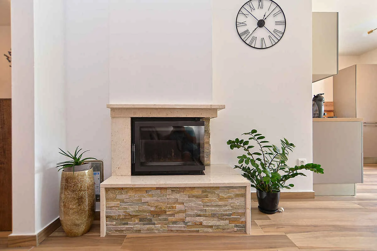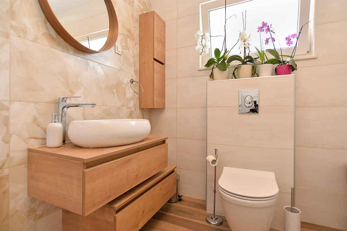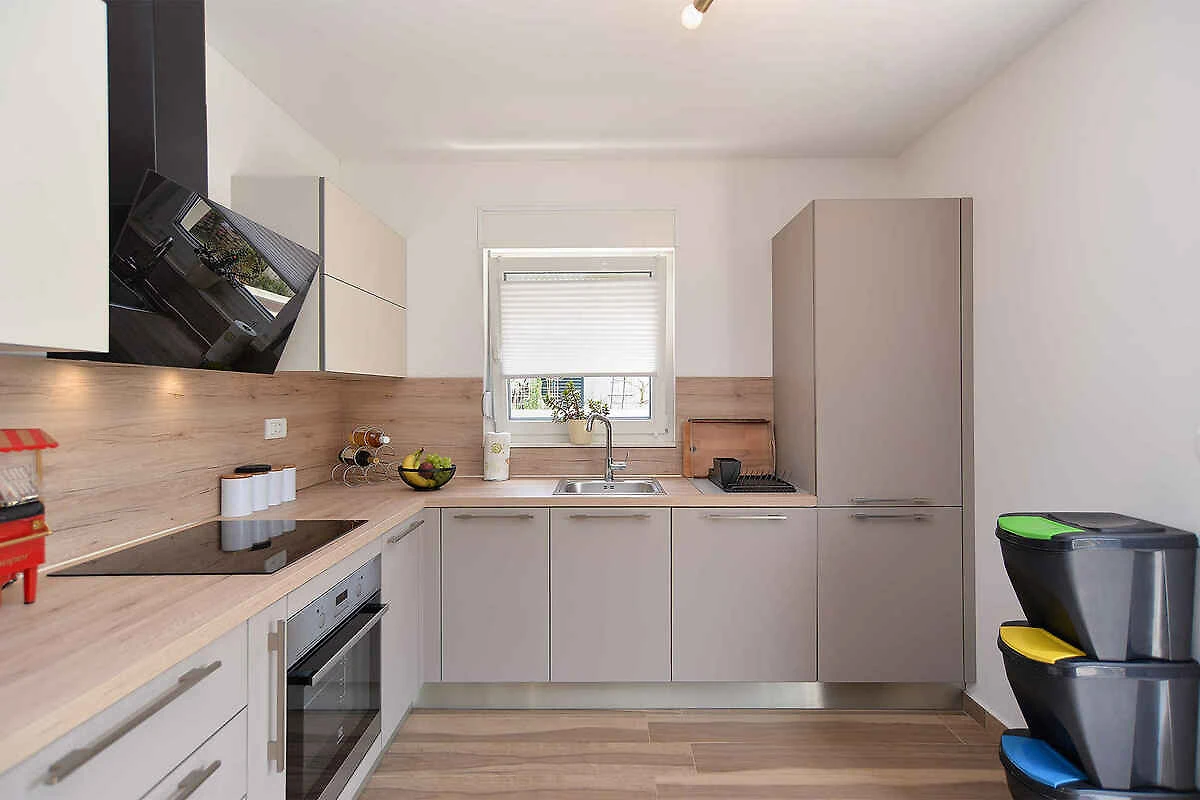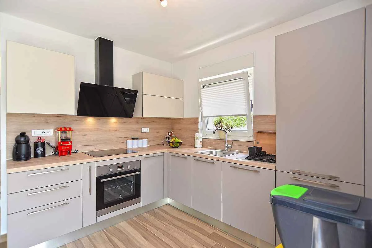 L'ingresso della vostra casa vacanze si trova im Erdgeschoss, é coperto e conduce direttamente nel corridoio con guardaroba. Soggiorno (30 mq) con angolo di seduta, TV, camino, zona pranzo e accesso alla terrazza (27 mq, mobili da giardino, ombrellone). Camera da letto (12 mq) con 1 letto matrimoniale. Camera da letto (12 mq) con 1 letto matrimoniale e accesso alla terrazza. Angolo cucina nel soggiorno con fornello elettrico (piano cottura ceran, 4 fornelli), forno, cappa aspirante, lavastoviglie, frigorifero (scomparto del ghiaccio), caffettiera, bollitore elettrico e accesso alla terrazza. Bagno (6 mq) con lavatrice, doccia, 1 lavandino, WC, asciugacapelli e finestra.