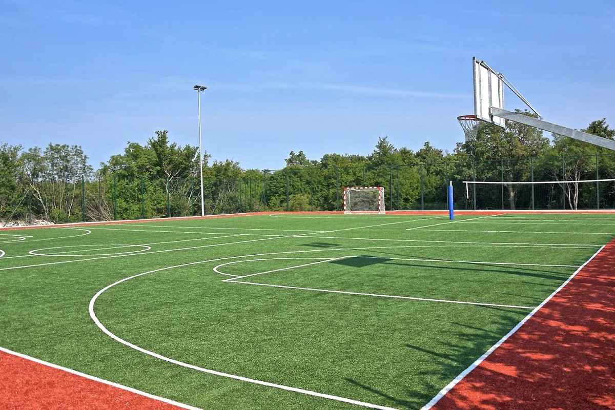 Il cortile della villa si estende per 876 m² ed è una vera oasi di pace e relax. Iniziate la giornata con un caffè nel patio coperto, rinfrescatevi con un tuffo nella piscina di 50 m² e poi rilassatevi sui lettini intorno alla piscina. All'esterno troverete anche un barbecue a legna e una cucina estiva ideale per mangiare all'aperto. C'è anche un parco giochi per bambini e per chi è in cerca di attività ci sono campi da tennis, basket, pallamano e pallavolo che questa villa condivide con la villa vicina.