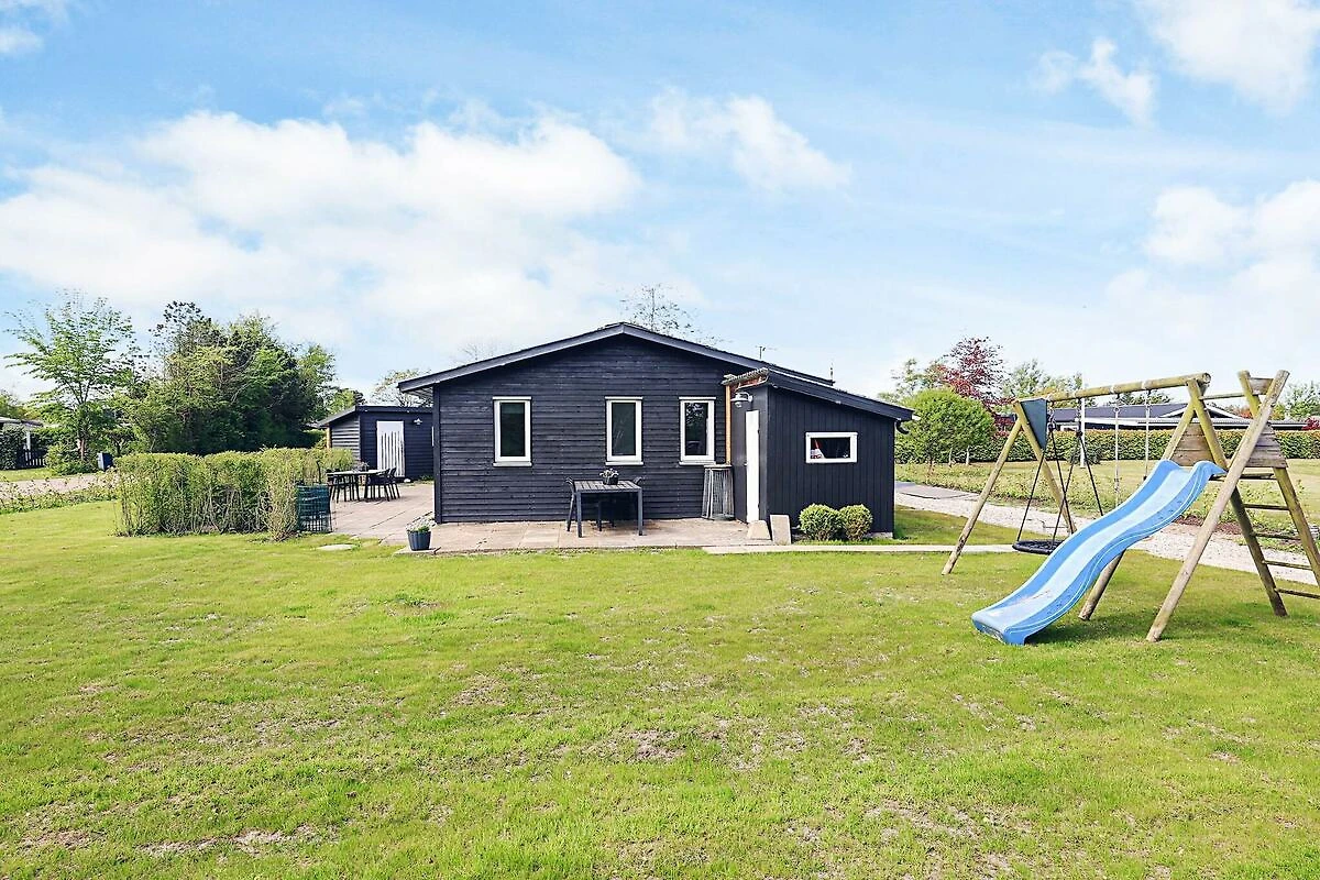 , Cucina separata(mobile cucina(elettrico), caffettiera, frigorifero(+ congelatore)), Soggiorno/camera da letto(brandina doppia, TV(canali televisivi tedeschi, canali TV danesi)), Camera da letto(letto matrimoniale), Camera da letto(letto singolo), Bagno(lavabo, doccia, WC), riscaldamento(elettrico), terrazza, mobili da giardino, termopompa aria-aria
