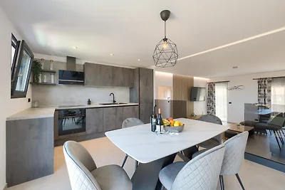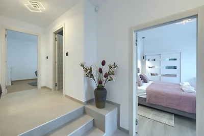 Siamo stati in quattro più il cane in questa casa per una settimana. Ci siamo sentiti tutti a nostro agio fin dal primo minuto. Una casa meravigliosa senza restrizioni! La casa offre semplicemente tutto ciò che si può immaginare. Cucina completamente attrezzata, bagni bellissimi, camere spaziose e un bellissimo grande soggiorno. La piscina è semplicemente un sogno (con seduta a getti) dentro la piscina! C'è anche un divertimento garantito. C'è un campo da freccette e un tavolo multifunzione con calcetto, mini biliardo e altri giochi. Dalla terrazza superiore si può persino vedere il mare. Dalla casa si può scendere a piedi alla spiaggia per circa 700 metri. Naturalmente si può anche arrivare in auto. La spiaggia è bellissima. C'è anche la spiaggia per cani. Anche il signor Marco, sua moglie e il signor Ilić sono molto gentili e pronti ad aiutare in caso di domande. Grazie per la bella sorpresa che ci aspettava in casa. Grazie per il tempo meraviglioso che abbiamo potuto trascorrere nella vostra casa.