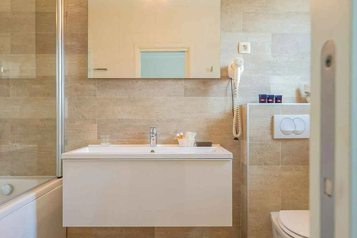 Già compreso nel prezzo: la tassa d´iscrizione, aria condizionata, parcheggio, elettricità, acqua, riscaldamento, Biancheria da letto, asciugamani, Accesso ad internet WLAN.