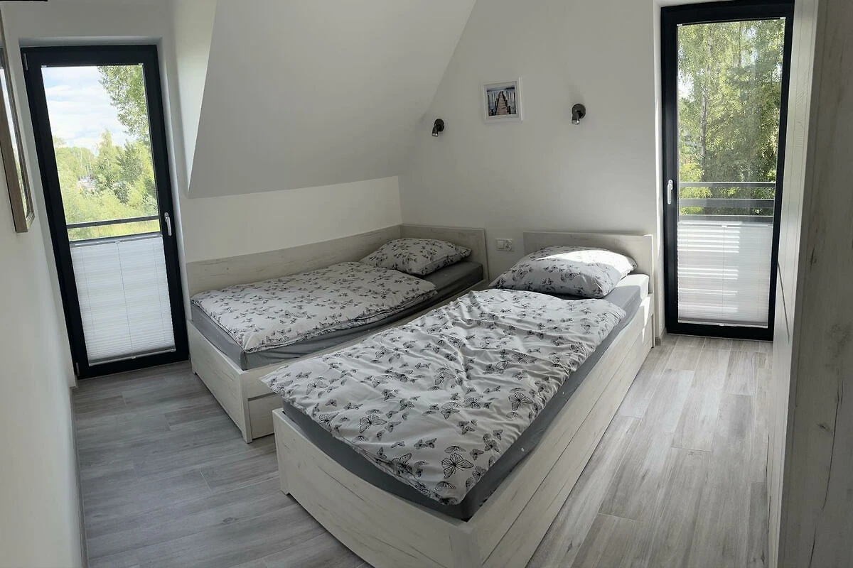 Siamo viaggiatori esperti della costa baltica polacca e abbiamo già vissuto molte sistemazioni, questa è stata semplicemente fantastica e prenoteremo di nuovo. Molto pulita, ottima attrezzatura, la posizione è semplicemente da sogno, ci siamo sentiti molto sicuri poiché il terreno è recintato. Contatto molto cordiale. Anche le signore del team di pulizia l'ultimo giorno sono state molto gentili, così si trascorre una vacanza rilassante. Siamo andati in famiglia con bambino, cane e nonni e tutti erano felici.
