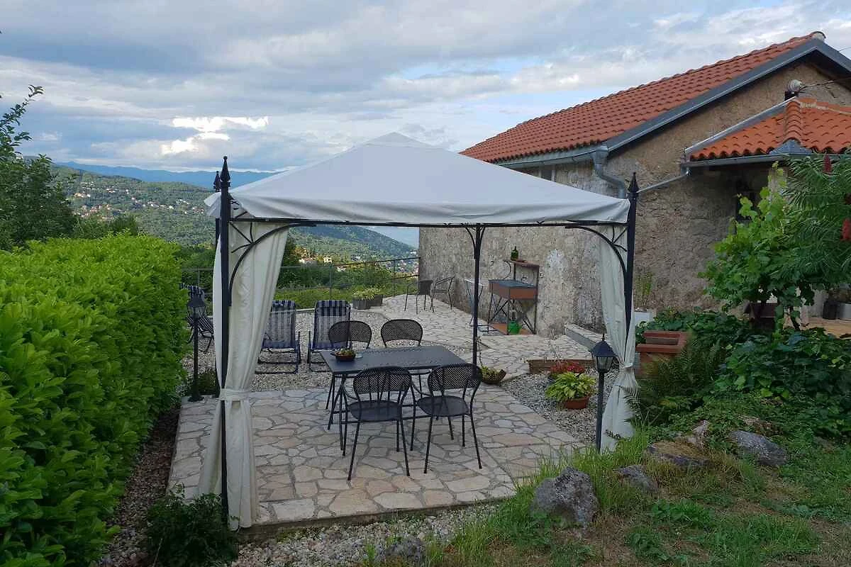 Lovran. La casa vacanza si trova in una trama del giardino grande 400 mq con fiori e alberi. L'accesso avviene attraverso una strada (asfaltata).