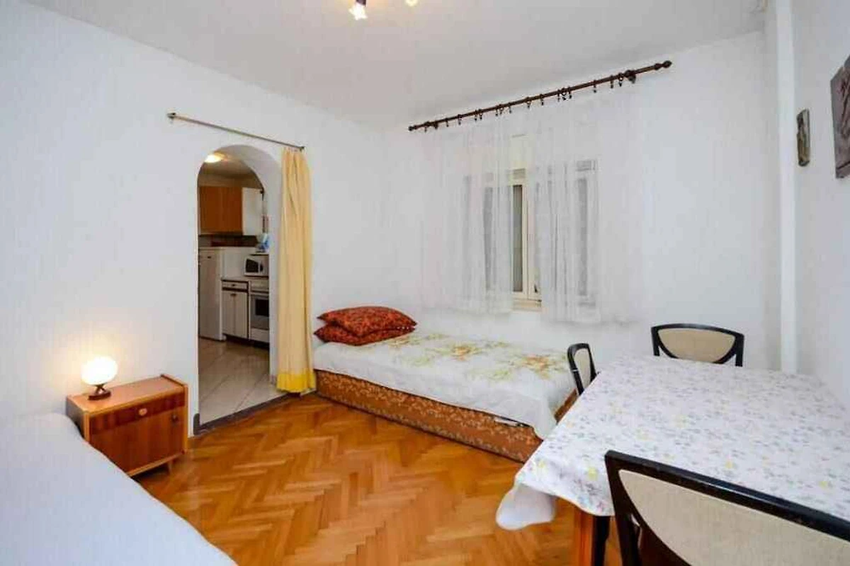 Senj. L' appartamento vacanze si trova in una trama del giardino chiuso con arbusti e alberi, delimitata da un muro. Il padrone di casa vive nella casa. Parcheggio sulla strada davanti alla casa.