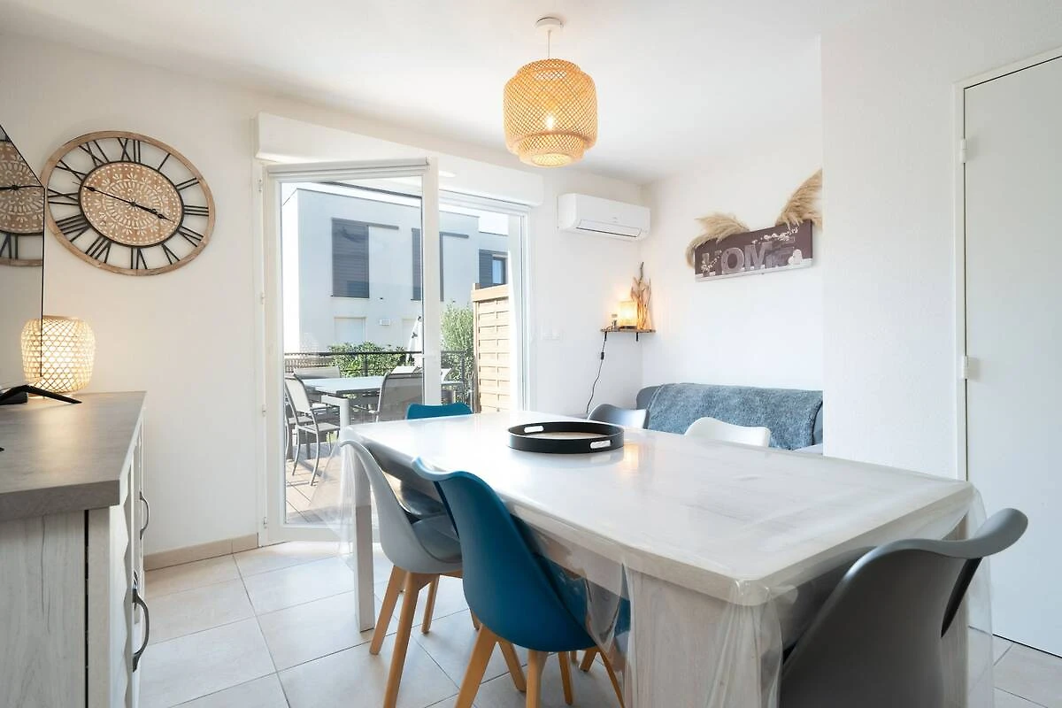 Questa accogliente e soleggiata villa di 58 m² a Valras-Plage offre un rifugio tranquillo a soli 450 metri dalla spiaggia sabbiosa. Con 3 camere da letto e spazio per un massimo di 8 persone, è ideale per famiglie o gruppi in cerca di una rilassante vacanza al mare. Situata in una zona tranquilla e adatta alle famiglie, la villa coniuga la vicinanza alla costa con una tranquilla atmosfera suburbana, perfetta per rilassarsi.