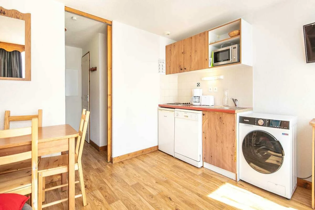 La cucina elettrica è completamente attrezzata con frigorifero, forno a microonde, lavastoviglie, macchina per il caffè e tutti i piatti e gli utensili necessari per preparare i pasti con facilità. Che stiate pianificando una vacanza invernale o una fuga estiva, questo accogliente rifugio di montagna offre comfort, praticità e una posizione privilegiata per un soggiorno indimenticabile a Chamrousse.