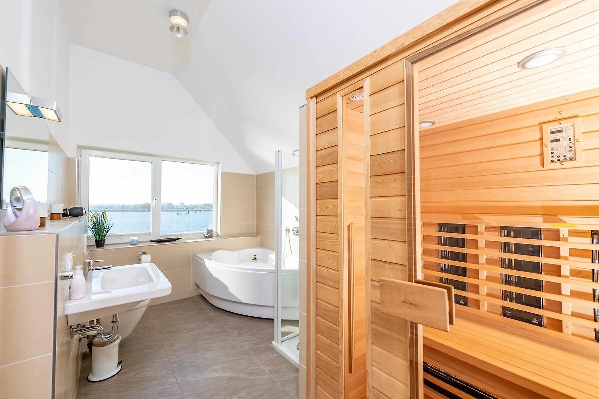 Già per la seconda volta sono stato qui a novembre per un fine settimana lungo, perché già il mio primo soggiorno (1 settimana a settembre) è stato un vero relax. L'appartamento è splendidamente arredato senza ostentare, ma con un'arredamento di alta qualità. Vasca idromassaggio, sauna e solo la vista su entrambi i lati verso l'acqua rendono 3 giorni come una settimana di vacanza. Ci vuole solo un buon libro e un bicchiere di vino... Meraviglioso!