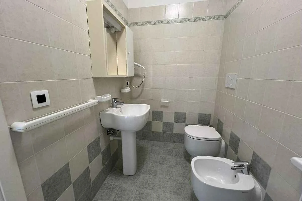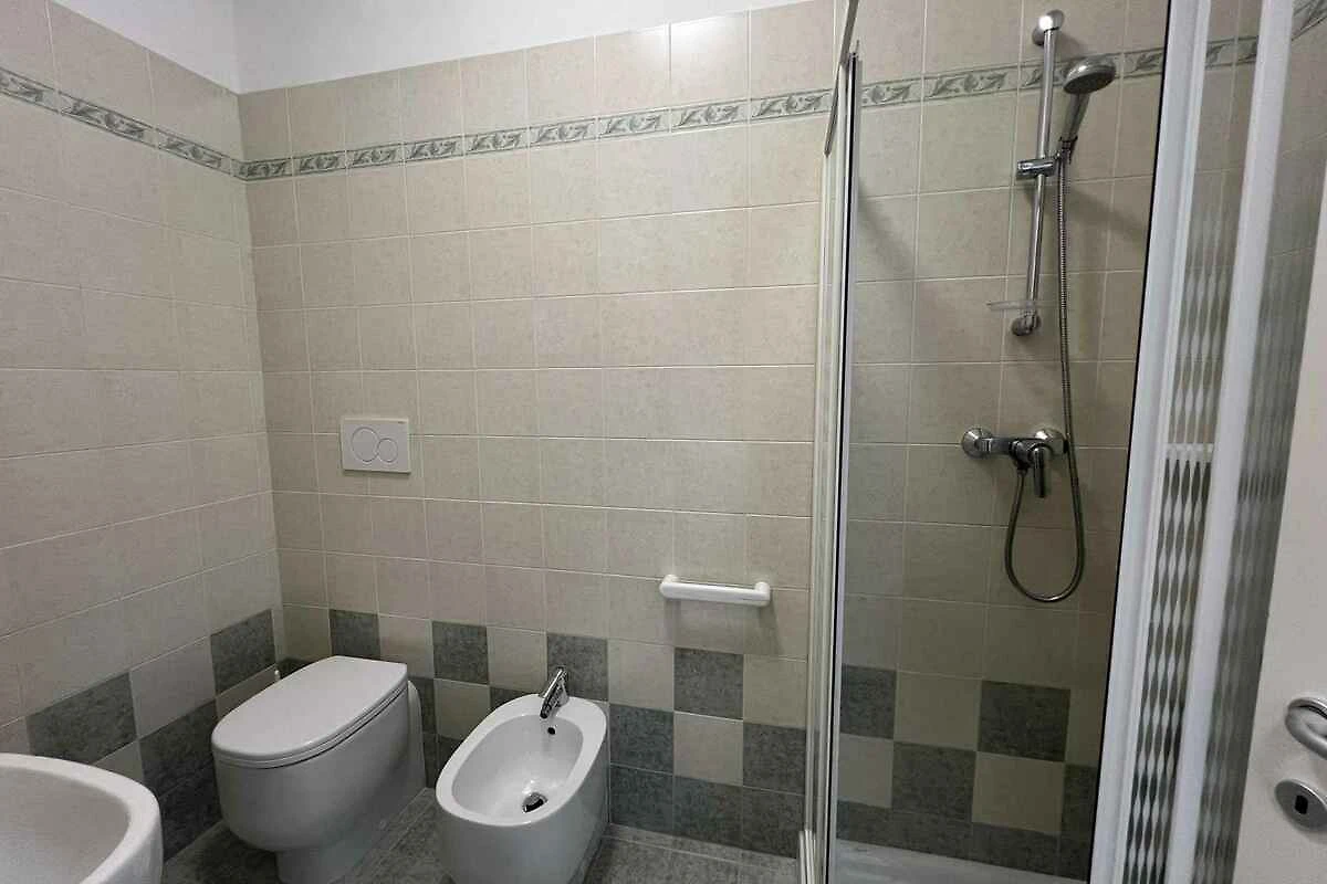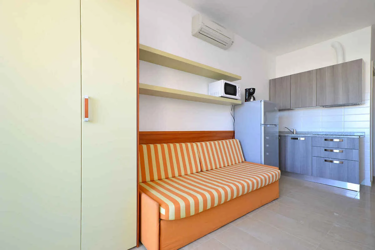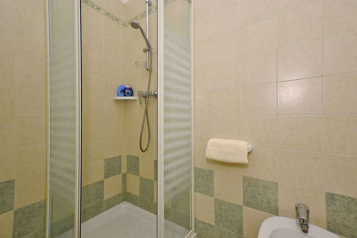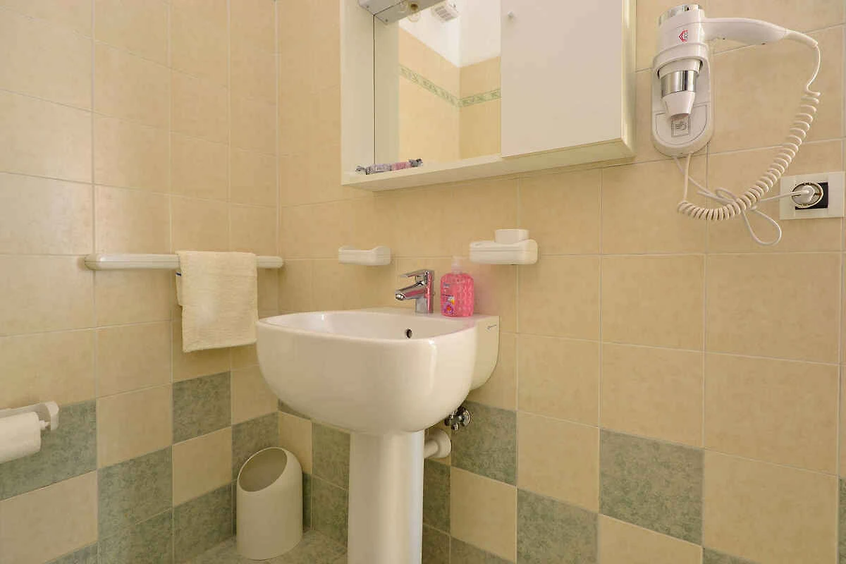 L'ingresso nel vostro appartamento per le vacanze si trova su diversi piani. L'alloggio può trovarsi al 1°, 2°, 3° o 4° piano. Soggiorno con 2 posti letto aggiuntivi su divano letto doppio, TV, zona pranzo, accesso al balcone (mobili da giardino) e il balcone è rivolto verso la strada. Camera da letto con 1 letto matrimoniale. Angolo cottura nel soggiorno con fornello a gas, frigorifero (scomparto congelatore), microonde, macchina da caffè e bollitore elettrico. Bagno con doccia, 1 lavandino, WC e asciugacapelli.