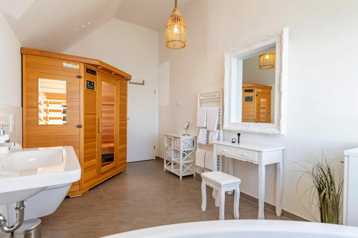La posizione della casa (acqua su entrambi i lati), alba, sauna + idromassaggio