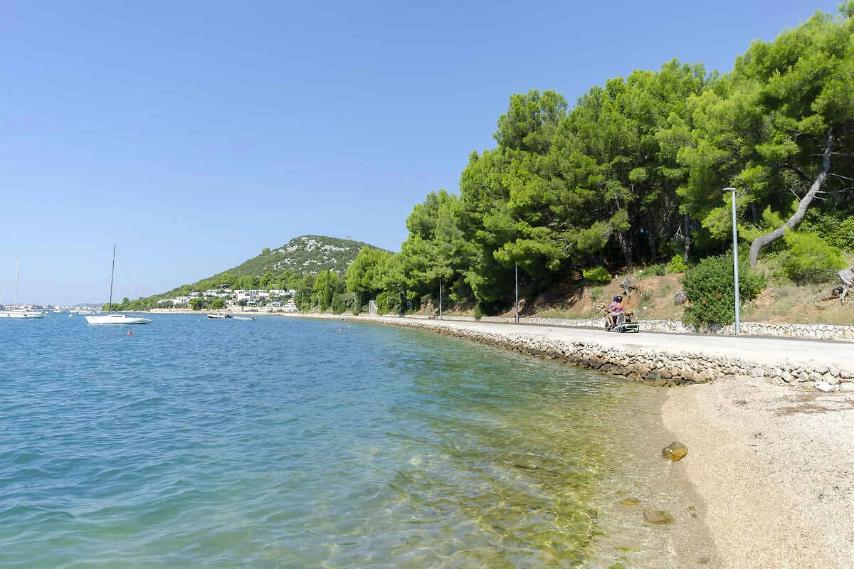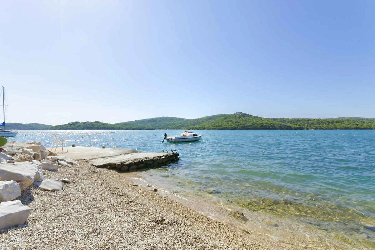 Acquisti 1300 m, Ristorante 800 m, Centro città 1,8 km. La fermata più vicina per i trasporti pubblici è a 1500 m. Tisno: Medico, Farmacia ciascuno a 1500 m. Discoteca 2 km e Banca 800 m. Aeroporto a Zadar 56 km. Strada principale 1500 m. In estate: mare Adriatico 100 m a Tisno (Spiaggia 300 m a Tisno con pietre e scogli). Pontile a Sibenik 25 km. Tisno: Minigolf 15 km, Tennis, Immersioni ciascuno a 2 km. Noleggio barche 800 m.