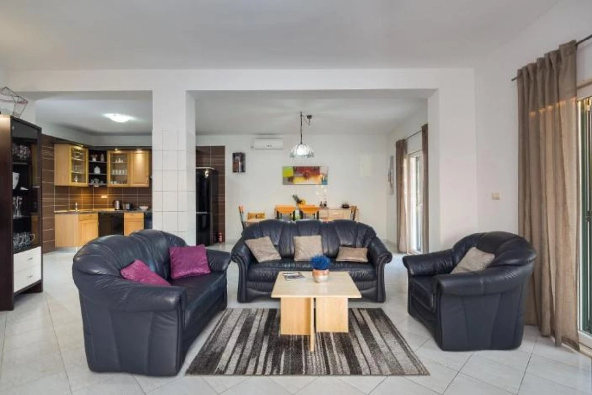 Scopri la vacanza perfetta nella Villa Mery, una splendida casa vacanze nella pittoresca città di Šestanovac. Questa lussuosa proprietà si estende su 300 metri quadrati e offre, con le sue 4 camere da letto arredate con gusto e 3 bagni moderni, spazio sufficiente per fino a 11 ospiti. Quando entrerete nella Villa Mery, sarete accolti da un’atmosfera calda e accogliente, in der Holzakzente und modernes Innendesign eine gemütliche und dennoch elegante Atmosphäre schaffen. Jedes Schlafzimmer ist eine Wohlfühloase mit weicher Bettwäsche, weichen Kissen und einer ruhigen Einrichtung, die einen erholsamen Schlaf verspricht. Il cuore della casa è la cucina completamente attrezzata con una moderna cucina componibile, un pratico bollitore e tutti gli utensili essenzi ali che vi servono per preparare deliziosi pasti. Riunitevi nell’ampia zona pranzo o gustate una colazione informale sull’isola della cucina.