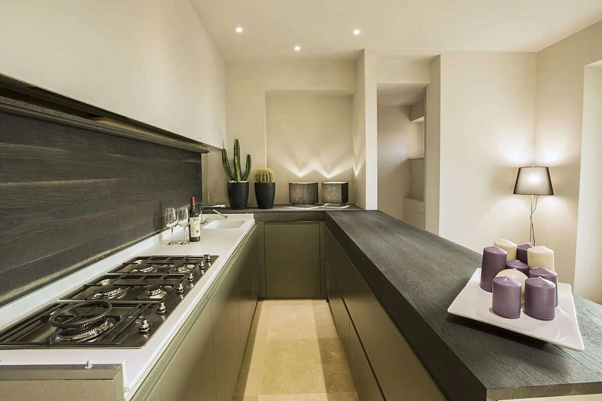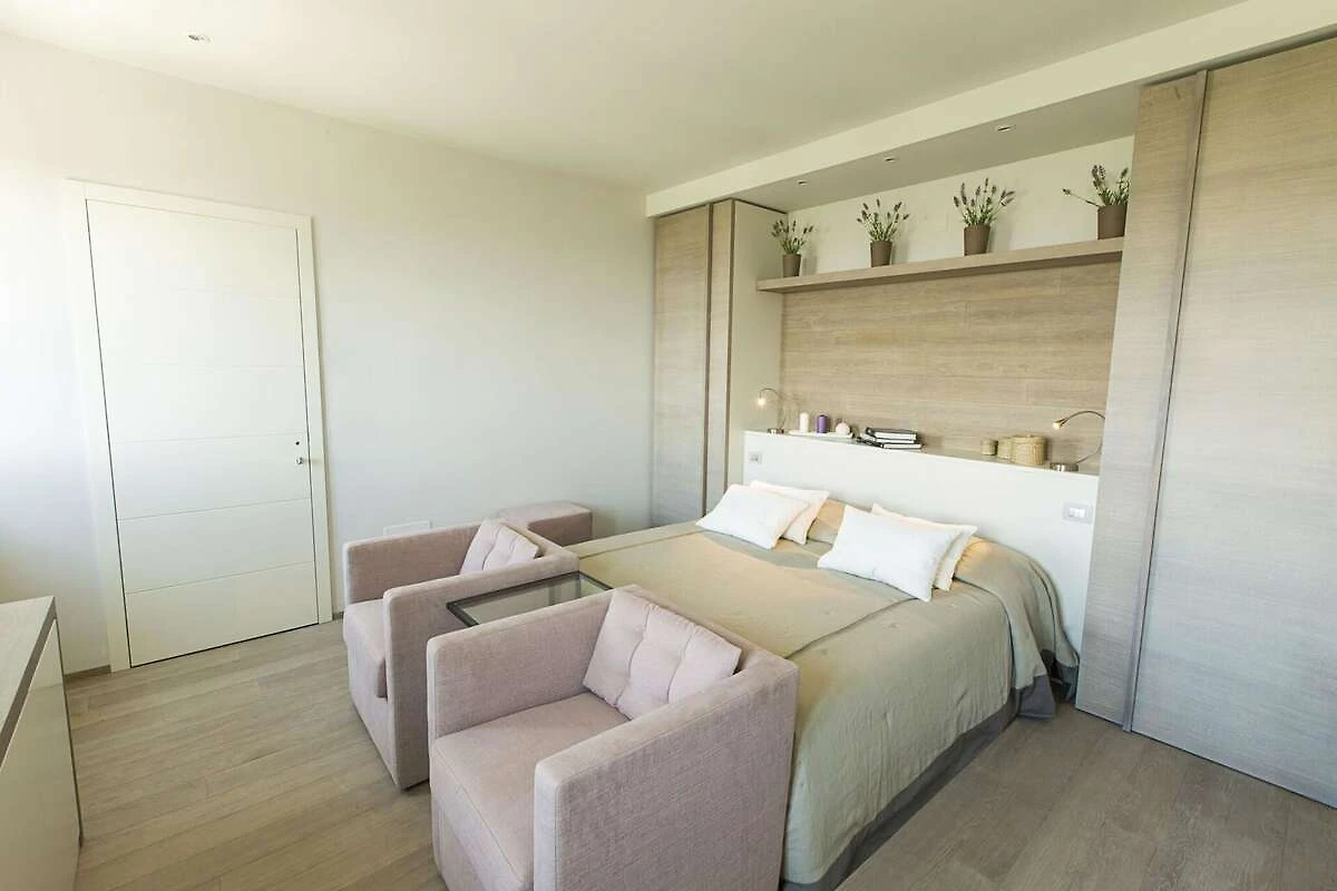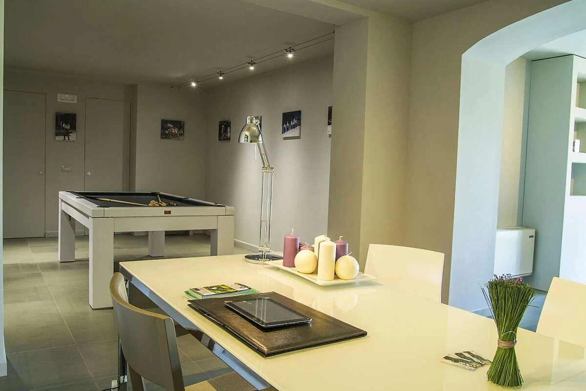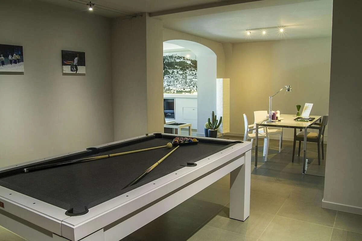La villa si sviluppa su tre piani e dispone di 4 lussuose suite matrimoniali, ognuna progettata all'insegna del comfort e del benessere. Il piano terra comprende una cucina completamente attrezzata, una sala da pranzo e due suite, una con doccia idromassaggio e cromoterapia, e l'altra con bagno turco, doccia a pioggia e vasca. Al primo piano, le altre due suite vantano viste mozzafiato e bagni moderni con docce e vasche idromassaggio. Il piano inferiore offre un accogliente salotto con tavolo da biliardo, TV satellitare e camino, perfetto per rilassarsi.
