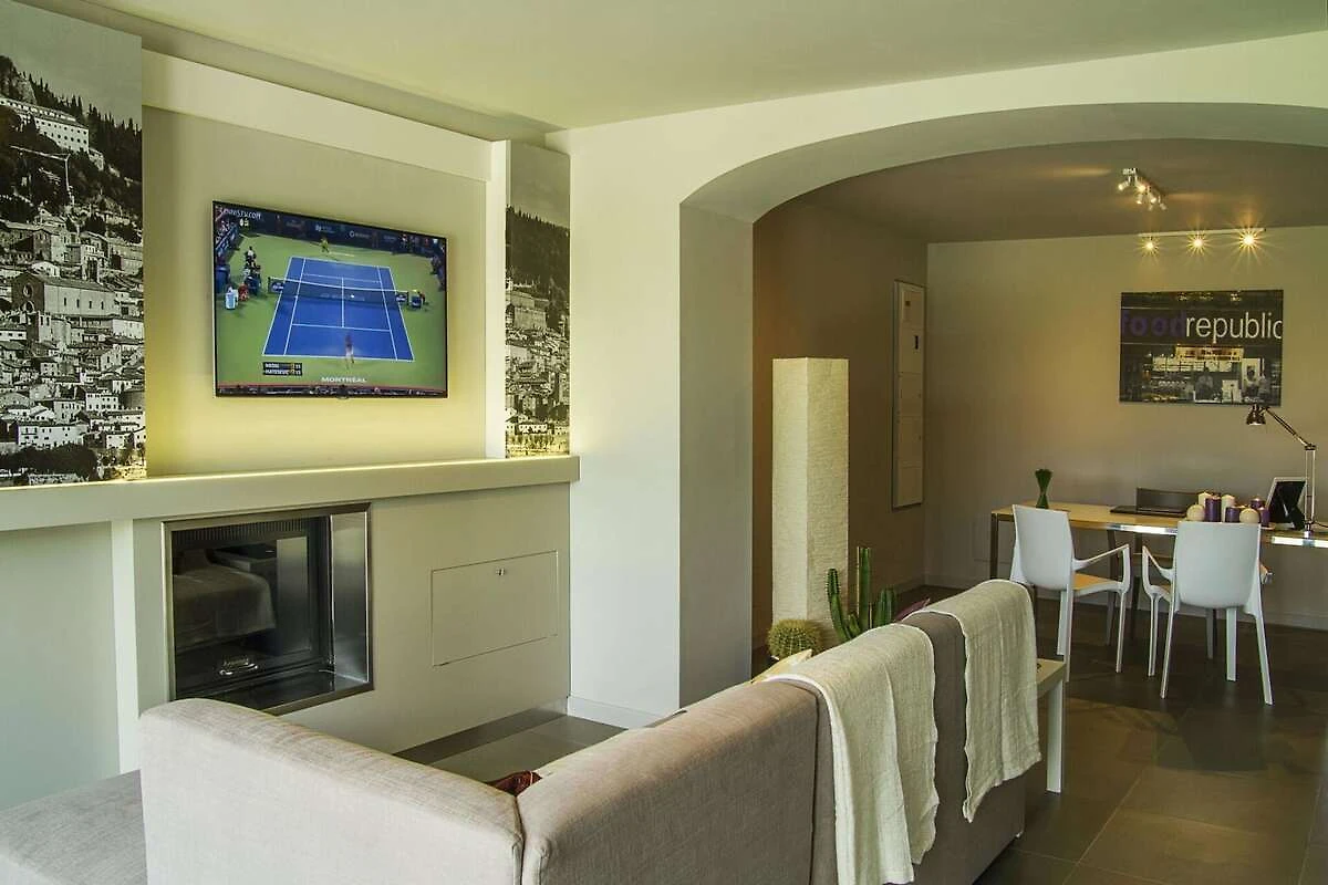 All'esterno, troverete una piscina a sfioro con vista su Sant'Egidio e sul Monastero dei Cappuccini, una vasca idromassaggio e una zona pranzo all'aperto con cucina completamente attrezzata. Godetevi la vista panoramica dal giardino privato, rilassatevi sotto il pergolato ed esplorate l'incantevole città di Cortona, a pochi passi di distanza. Con lusso, comfort e privacy, questa villa offre il perfetto rifugio toscano per un soggiorno indimenticabile.
