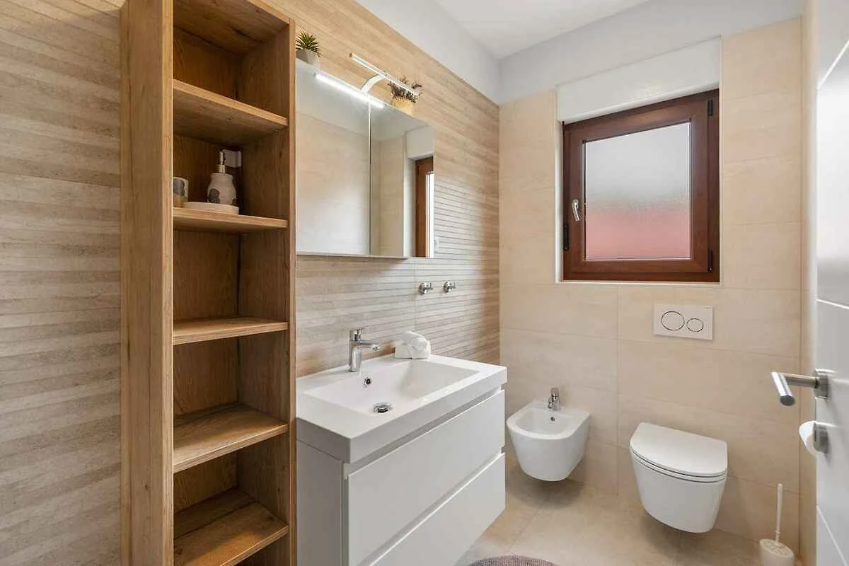 L'ingresso della sua villa si trova im Erdgeschoss e é a livello del suolo. Soggiorno con TV e accesso alla terrazza. 3 camere da letto tutto a con 1 letto matrimoniale. Cucina con stufa a gas, forno, lavastoviglie, frigorifero (scomparto del ghiaccio), microonde, caffettiera, tostapane e bollitore elettrico. Bagno con lavatrice, doccia, 1 lavandino e WC. Bagno con lavatrice, doccia, 1 lavandino, WC e asciugacapelli.