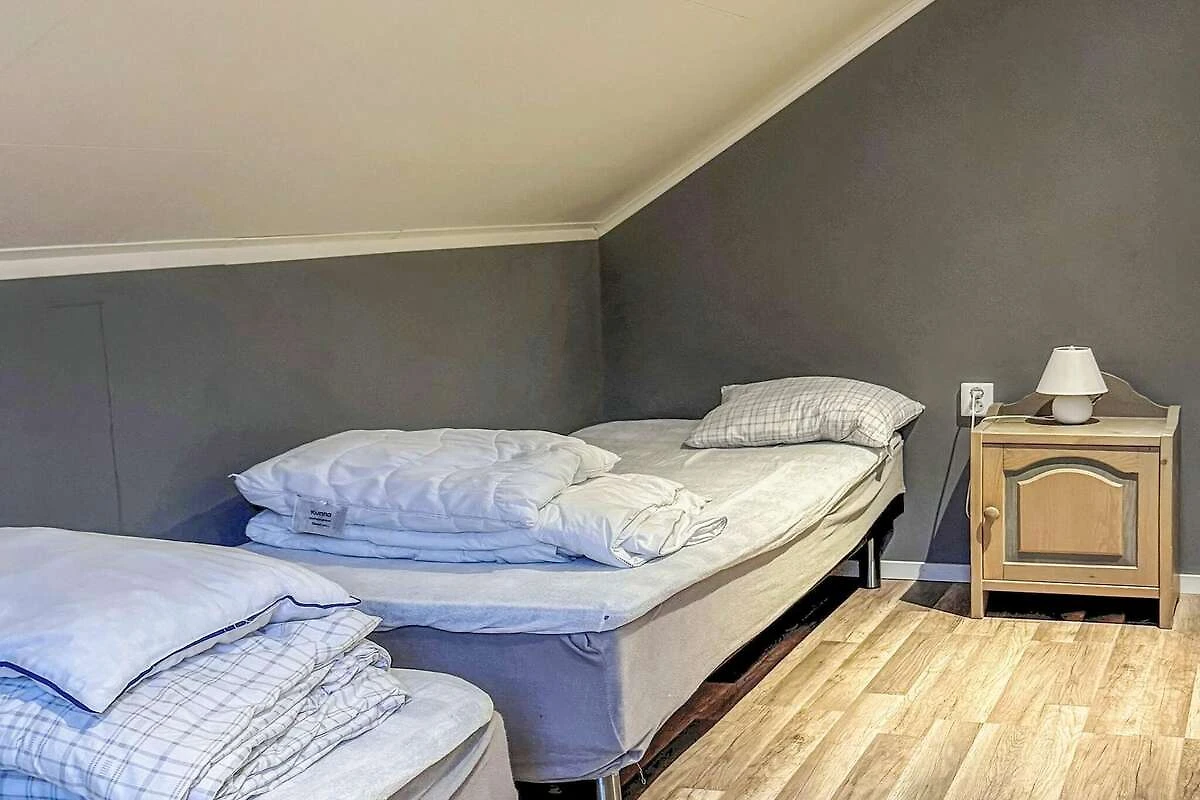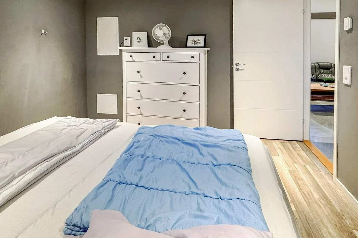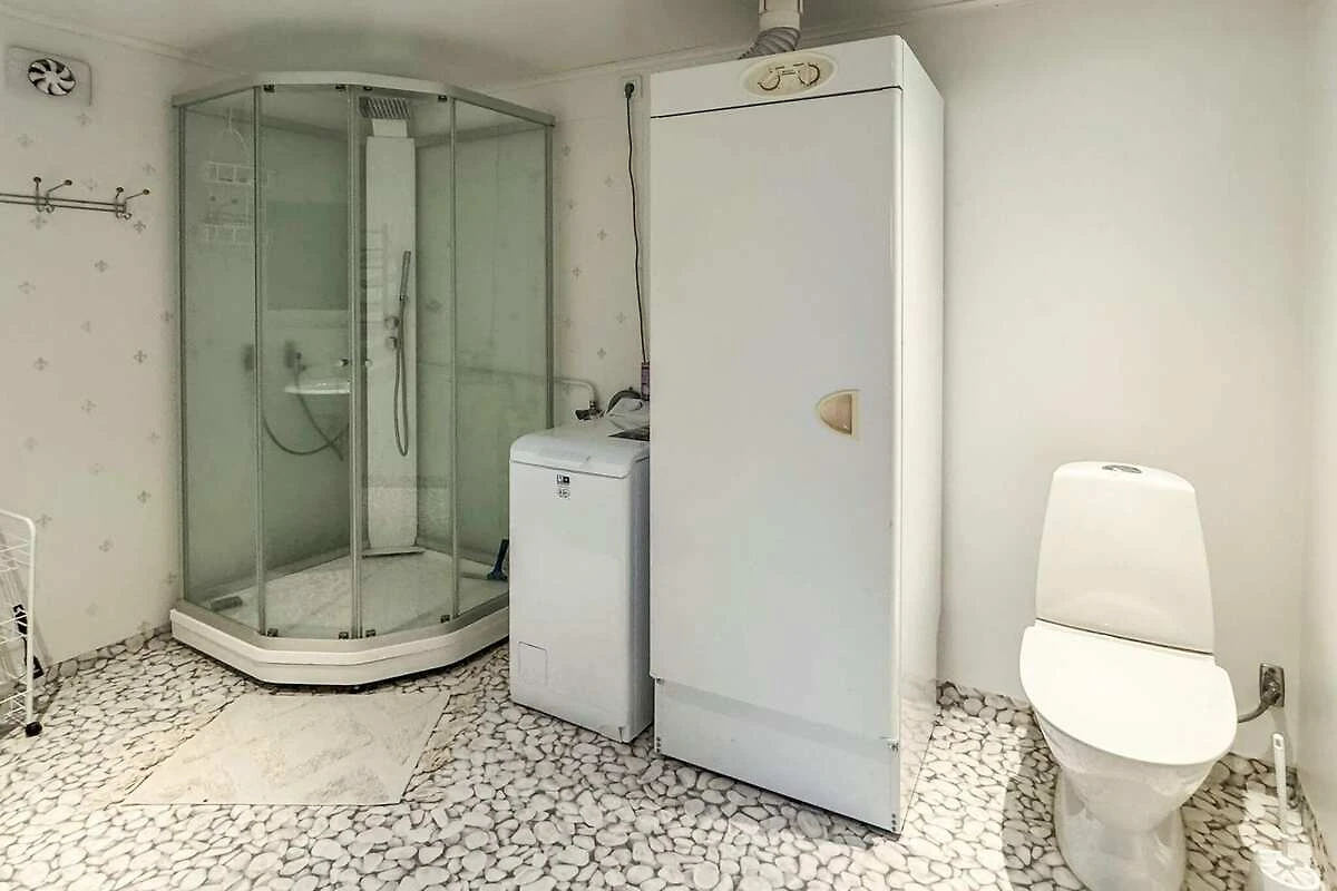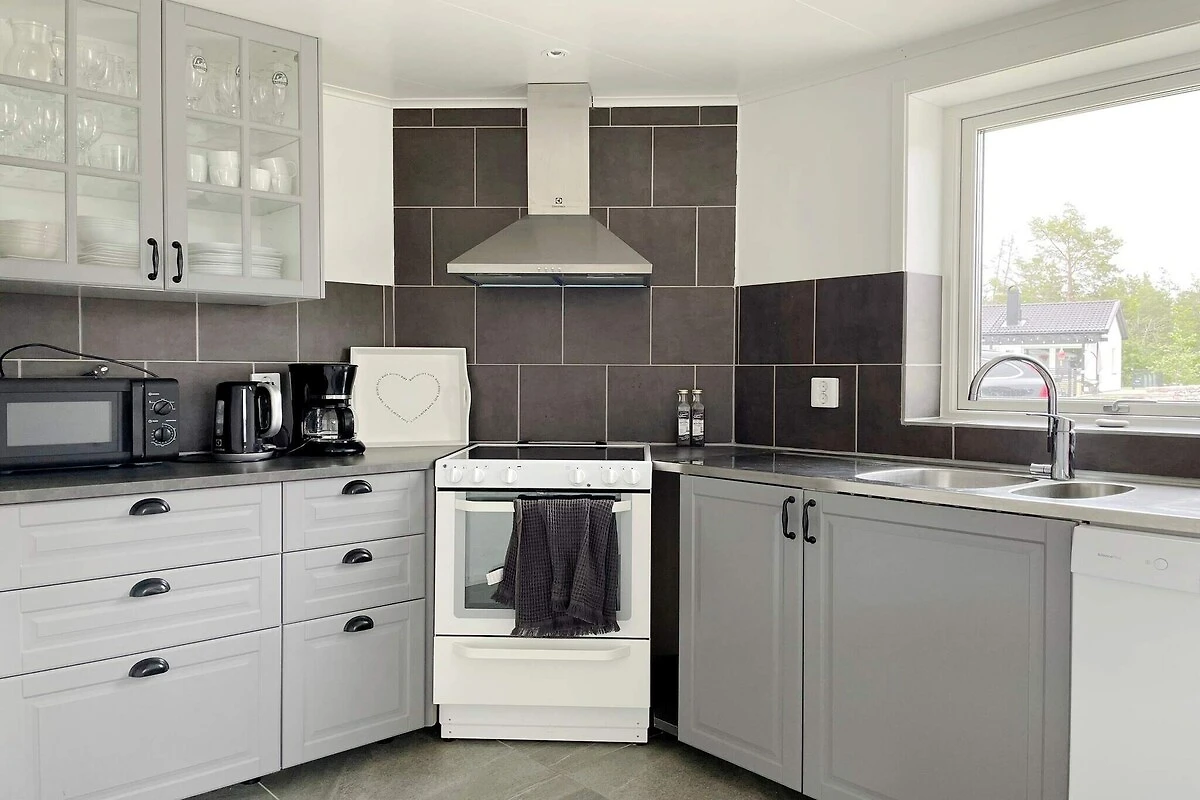 , Cucina separata(mobile cucina(elettrico), caffettiera, forno a microonde, lavastoviglie, frigo con congelatore), Soggiorno/camera da letto(TV(canali TV svedesi)), Camera da letto(letto matrimoniale), Camera da letto(2x letto singolo), Camera da letto(2x letto singolo), Bagno(lavabo, doccia, WC, lavatrice, asciugatoio), riscaldamento(elettrico), mobili da giardino, parcheggio
