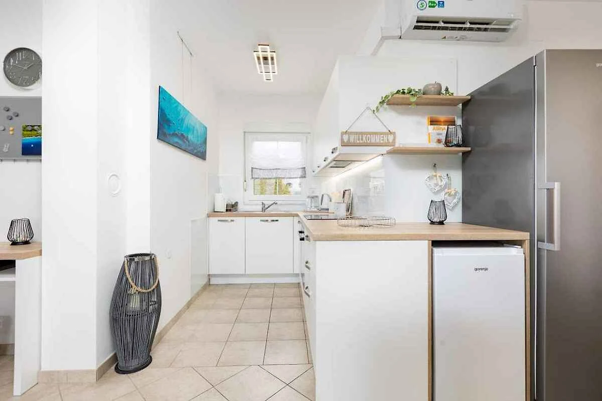 L' appartamento vacanze è arredato moderno. Anche a causa della vista dalla struttura sul mare e tranquilla posizione, il domicilio è popolare. Attrezzature: possibilità di grigliare e mobili da giardino. Giardino, balcone con vista mare