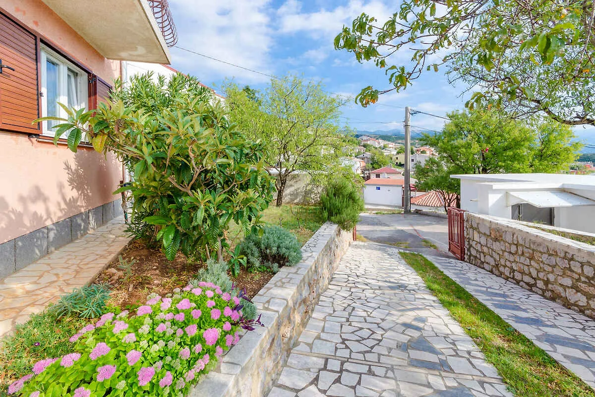 Senj. L' appartamento vacanze si trova in una trama del giardino chiuso con prato, fiori e alberi, delimitata da una recinzione. L'accesso avviene vicino a una strada secondaria (asfaltata). Parcheggio (per 1 auto) sulla proprietà.