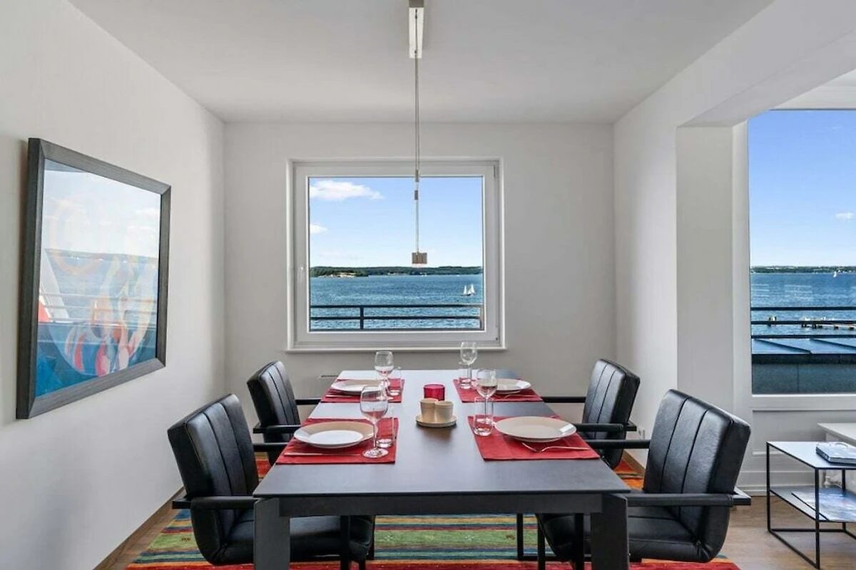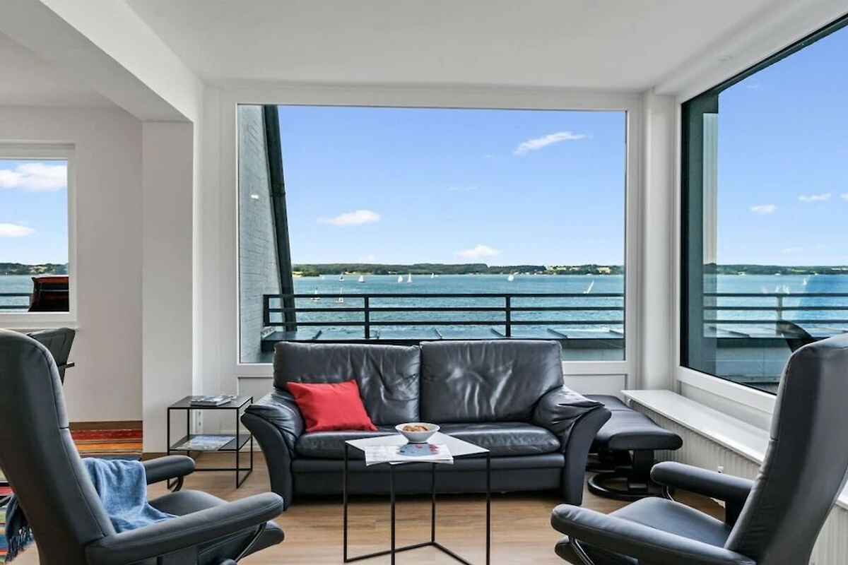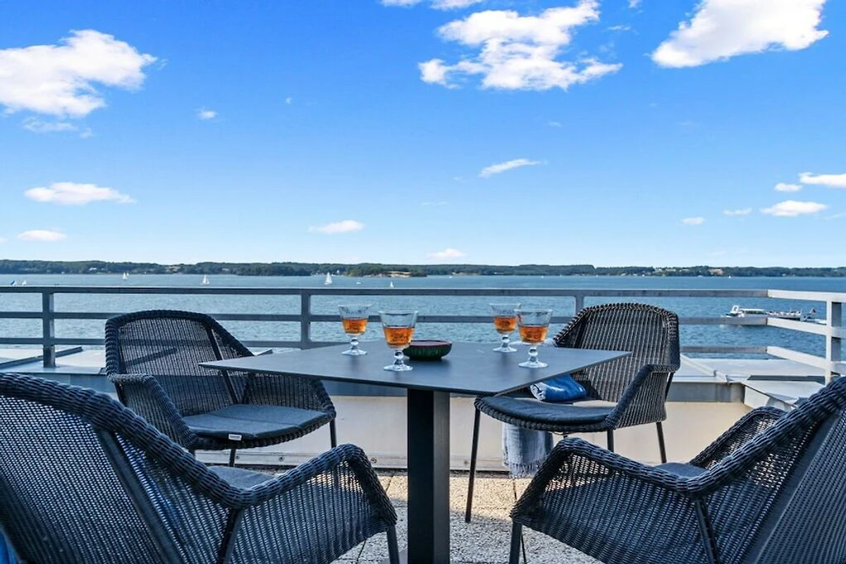 Appartamento per 4 persone in una posizione privilegiata, direttamente sulla spiaggia di Sandwig a Glücksburg, nel fiordo di Flensburg, con un balcone imperdibile e una grande terrazza sul tetto affacciata sull'acqua. 2 camere da letto, soggiorno-pranzo e cucina aperta con vista sul fiordo e sulle Isole Ox in Danimarca. Bagno e ulteriore WC per gli ospiti. Spaziosa terrazza sul tetto per la colazione ma anche per esercizi di yoga o pilates per due o, se necessario, con un istruttore di fitness...? (Possono essere forniti gli indirizzi per la prenotazione.) Scuola di yacht e nuoto nel fiordo o in autunno/inverno alle terme di Fördeland, a 5 minuti a piedi? Puro relax e forma fisica!