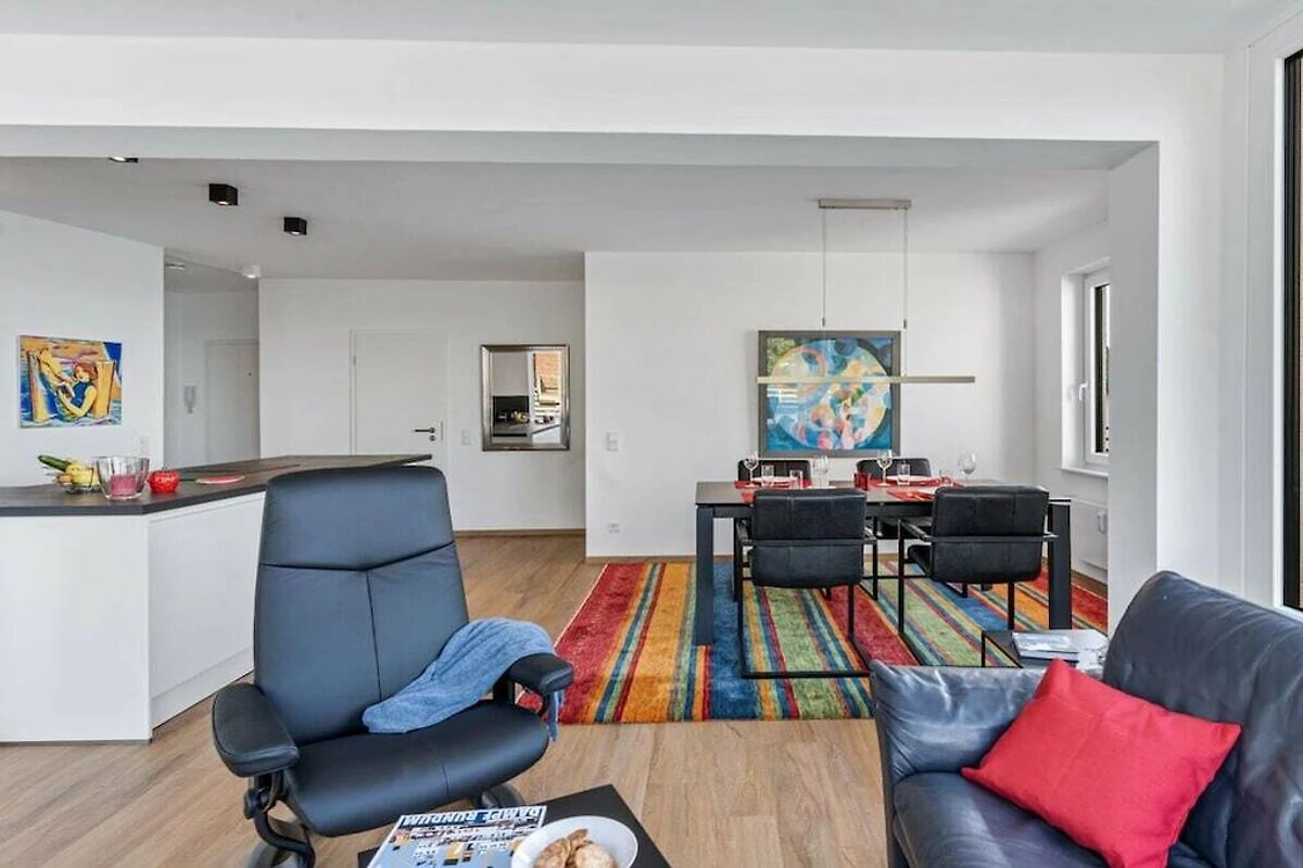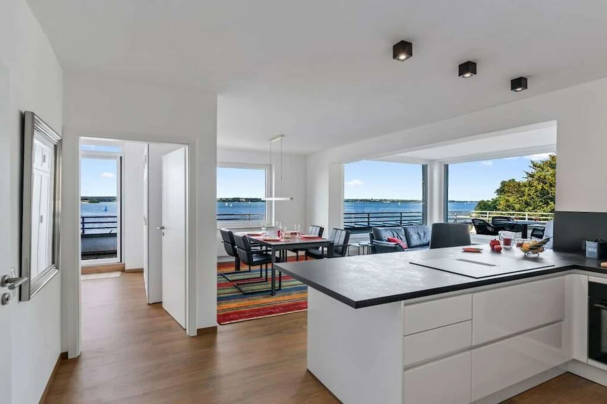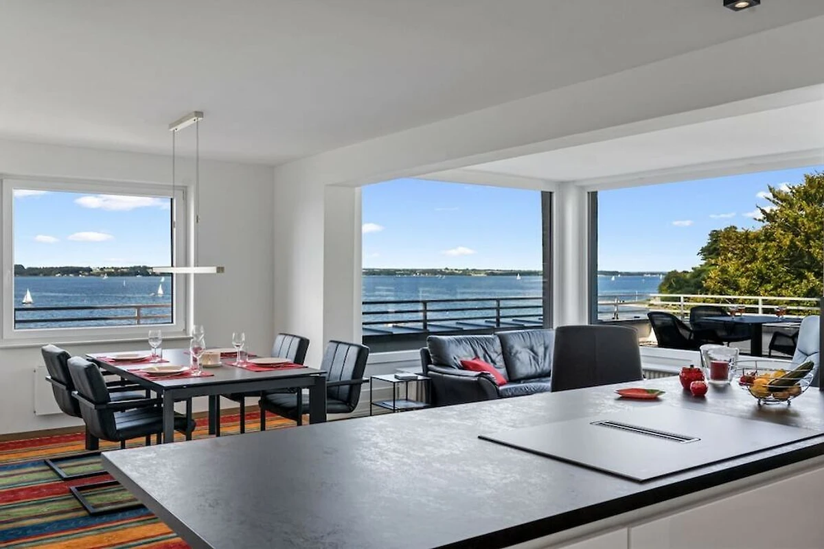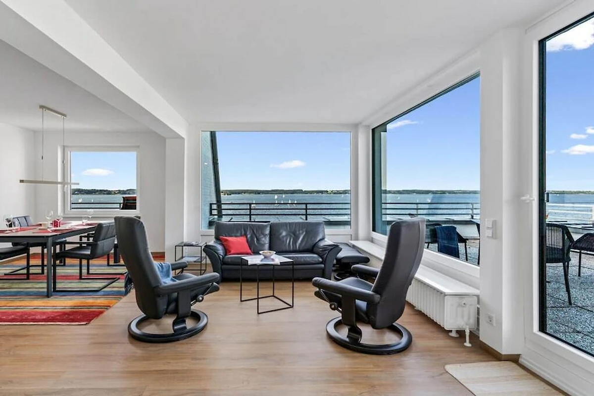 Appartamento per 4 persone in una posizione privilegiata, direttamente sulla spiaggia di Sandwig a Glücksburg, nel fiordo di Flensburg, con un balcone imperdibile e una grande terrazza sul tetto affacciata sull'acqua. 2 camere da letto, soggiorno-pranzo e cucina aperta con vista sul fiordo e sulle Isole Ox in Danimarca. Bagno e ulteriore WC per gli ospiti. Spaziosa terrazza sul tetto per la colazione ma anche per esercizi di yoga o pilates per due o, se necessario, con un istruttore di fitness...? (Possono essere forniti gli indirizzi per la prenotazione.) Scuola di yacht e nuoto nel fiordo o in autunno/inverno alle terme di Fördeland, a 5 minuti a piedi? Puro relax e forma fisica!