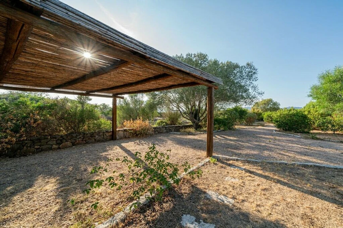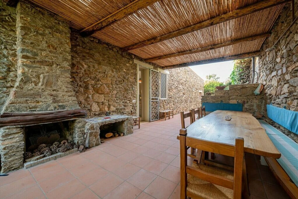 La villa dispone di un ulteriore spazio esterno attrezzato con doccia esterna, lungo tavolo da pranzo e caminetto.