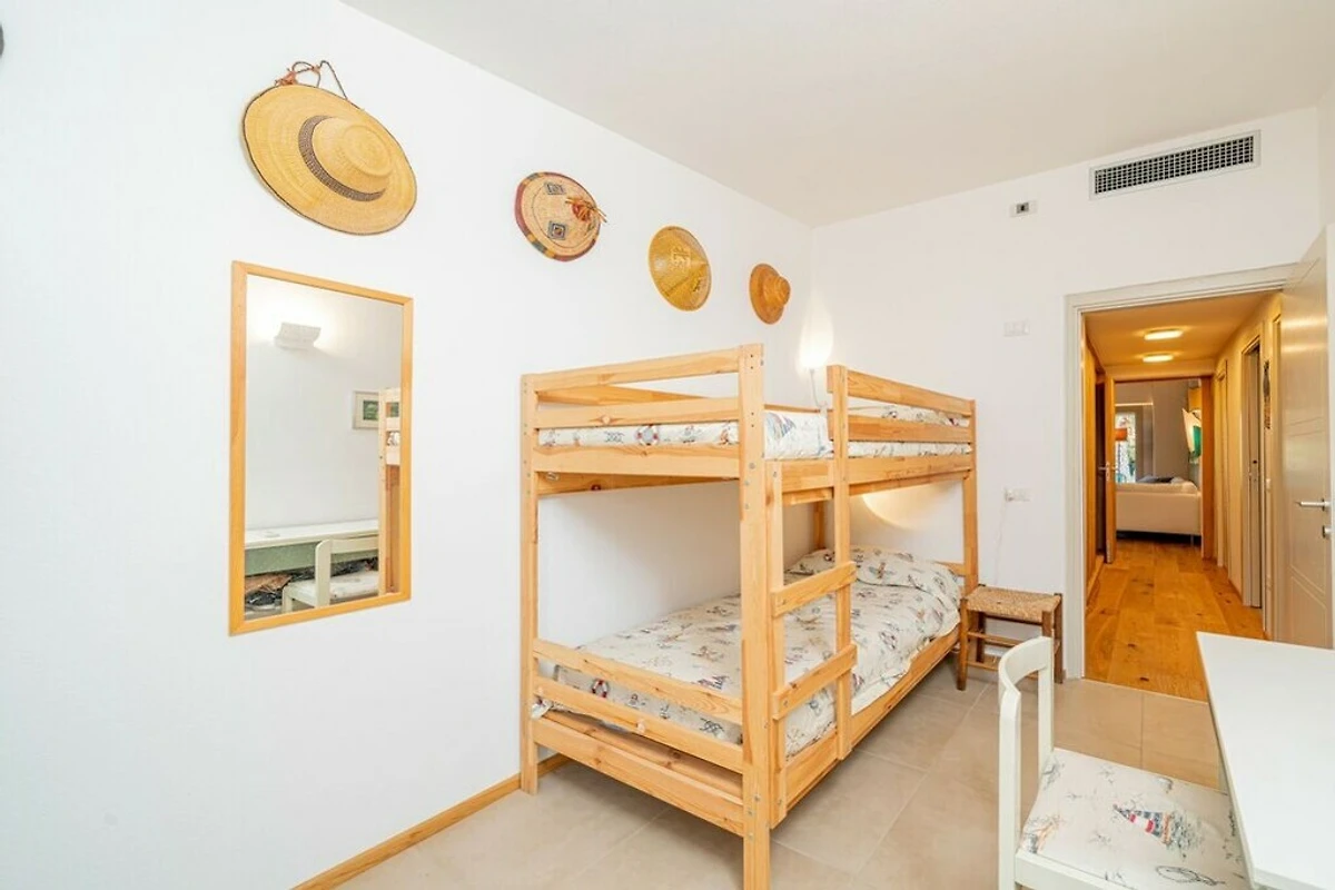 La zona notte è composta da quattro stanze. La camera da letto principale, anch'essa decorata con un muro in pietra, dispone di un letto alla francese, un armadio con ante, un guardaroba, accesso al terrazzo e un bagno privato con vasca. La seconda e la terza camera sono entrambe dotate di letto matrimoniale, armadio o appendiabiti, cassettiera e accesso al cortile. Uno di loro ha anche il proprio bagno con doccia. L'ultima camera è dotata di un letto a castello, una scrivania e un armadio e ha anche accesso al cortile. Un bagno con ampio lavabo e lavatrice completa la struttura.