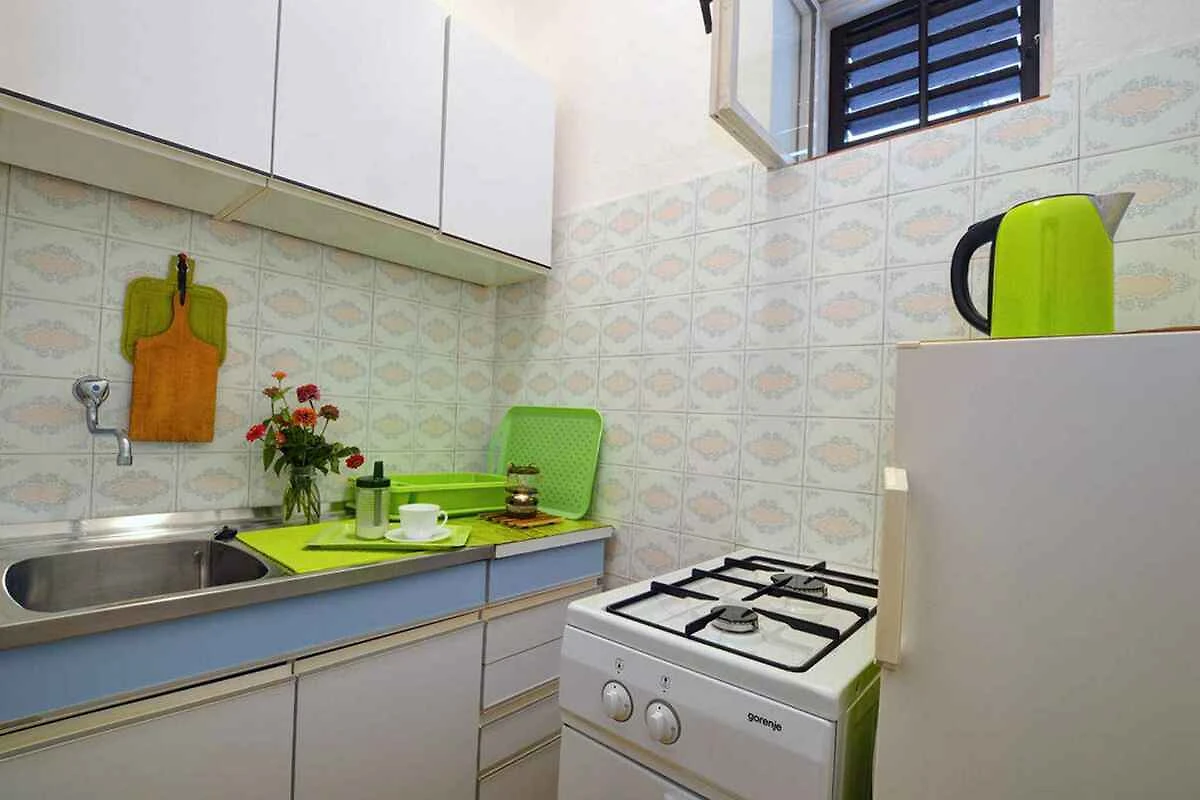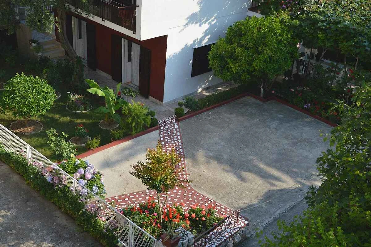 Podaca. L' appartamento vacanze si trova in una trama del giardino chiuso, grande 30 mq con fiori, arbusti e alberi, delimitata da una recinzione. Il padrone di casa vive solo temporaneamente nella casa. L'accesso avviene vicino a una strada secondaria (asfaltata). Parcheggio (per 1 auto) sulla proprietà.