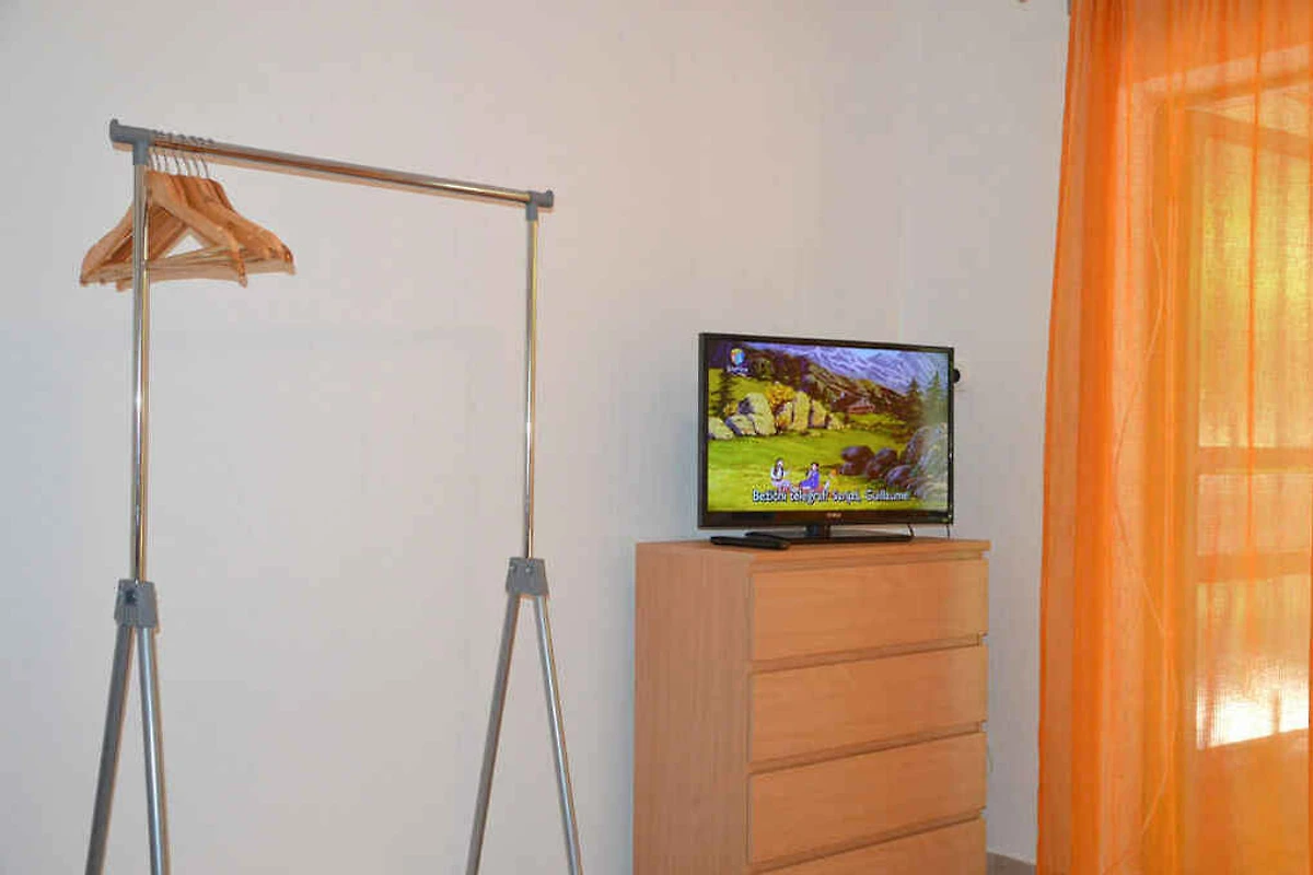 L'ingresso del vostro appartamento si trova im Erdgeschoss, é a livello del suolo e conduce direttamente nel corridoio. Soggiorno con 2 letti aggiuntivi su divano/sofa, TV e zona pranzo (3 posti). Camera da letto (10 mq) con 1 letto matrimoniale e Ferro (potenza in base all'ordine). Angolo cucina nel soggiorno con stufa a gas (2 fiamme), frigorifero, bollitore elettrico, accesso alla terrazza e Stoviglie e posate disponibili. Bagno con vasca da bagno, 1 lavandino, WC, finestra e Lavatrice (servizio su richiesta), asciugacapelli (su richiesta).