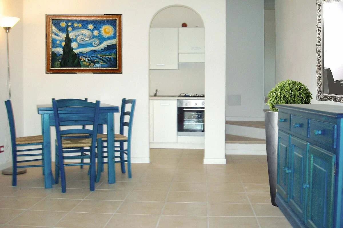 Situato al 1° piano del complesso Residence Ea Bianca, l'appartamento dispone di 3 ampie camere da letto, un soggiorno con divano letto matrimoniale e TV e una cucina a vista completamente attrezzata con forno, piano cottura a 4 fuochi, frigorifero con congelatore e seggiolone, ideale per vacanze in completa autonomia. Lavatrice e aria condizionata offrono ulteriore comfort.