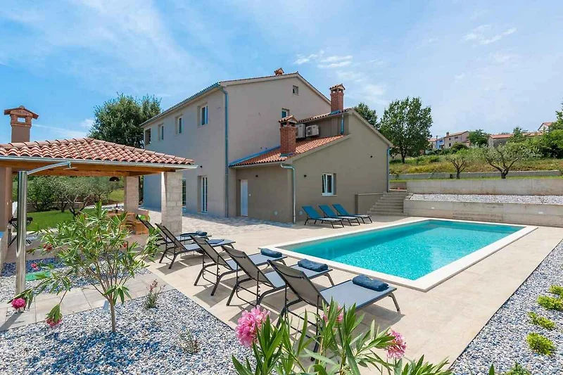 La villa indipendente è arredata moderna. La proprietà si trova in una zona residenziale. Attrezzature: ombrellone, lettino da sole, doccia da giardino, possibilità di grigliare e mobili da giardino.