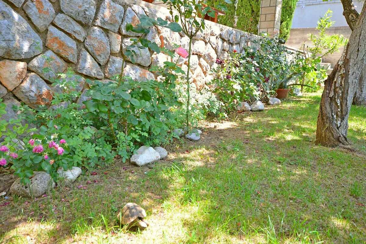 Senj. L' appartamento vacanze si trova in una trama del giardino chiuso con prato, fiori, arbusti e alberi, delimitata da un muro. Il padrone di casa vive nella casa. Parcheggio sulla strada davanti alla casa.